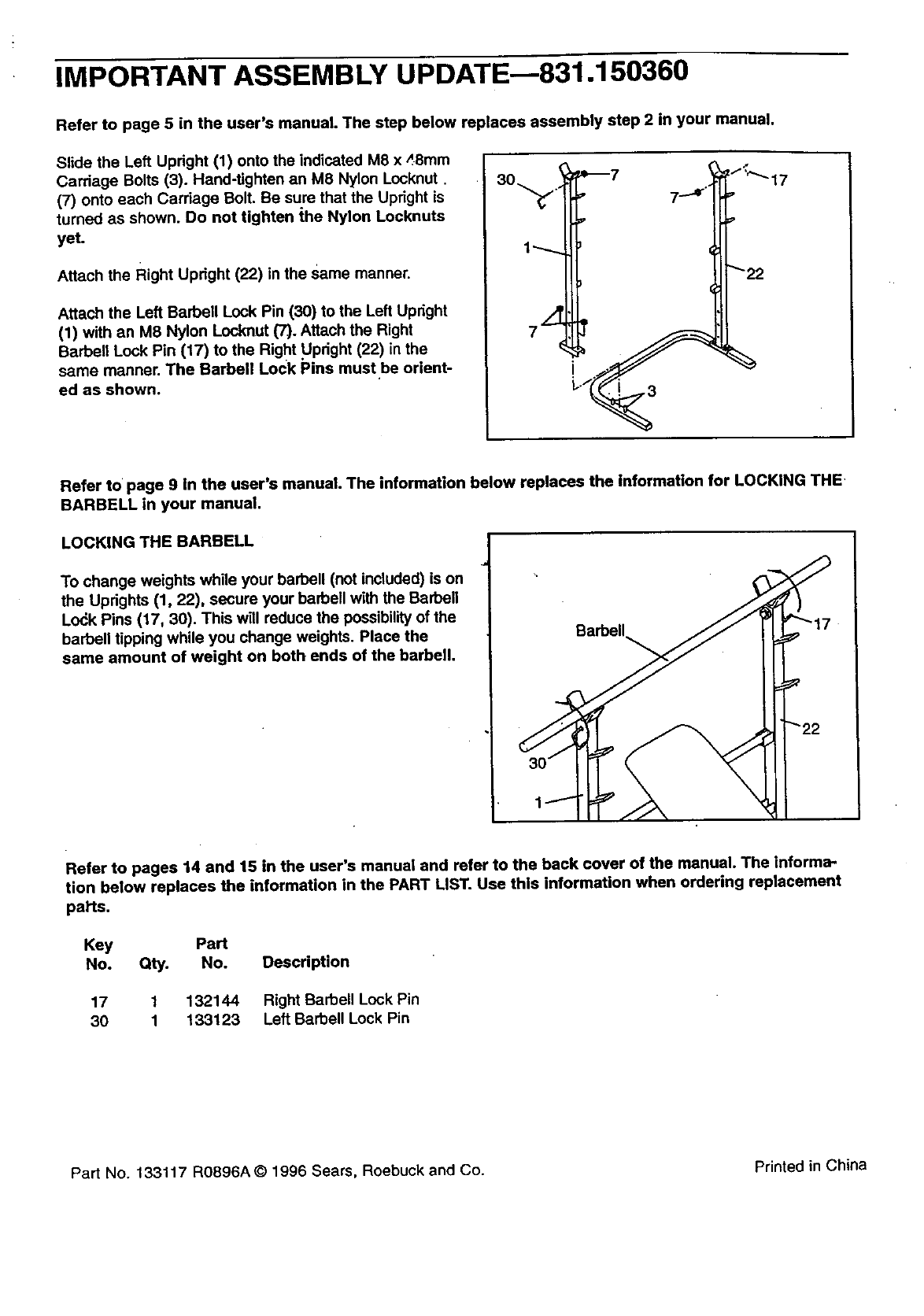 IMPORTANT ASSEMBLY UPDATE--831.150360