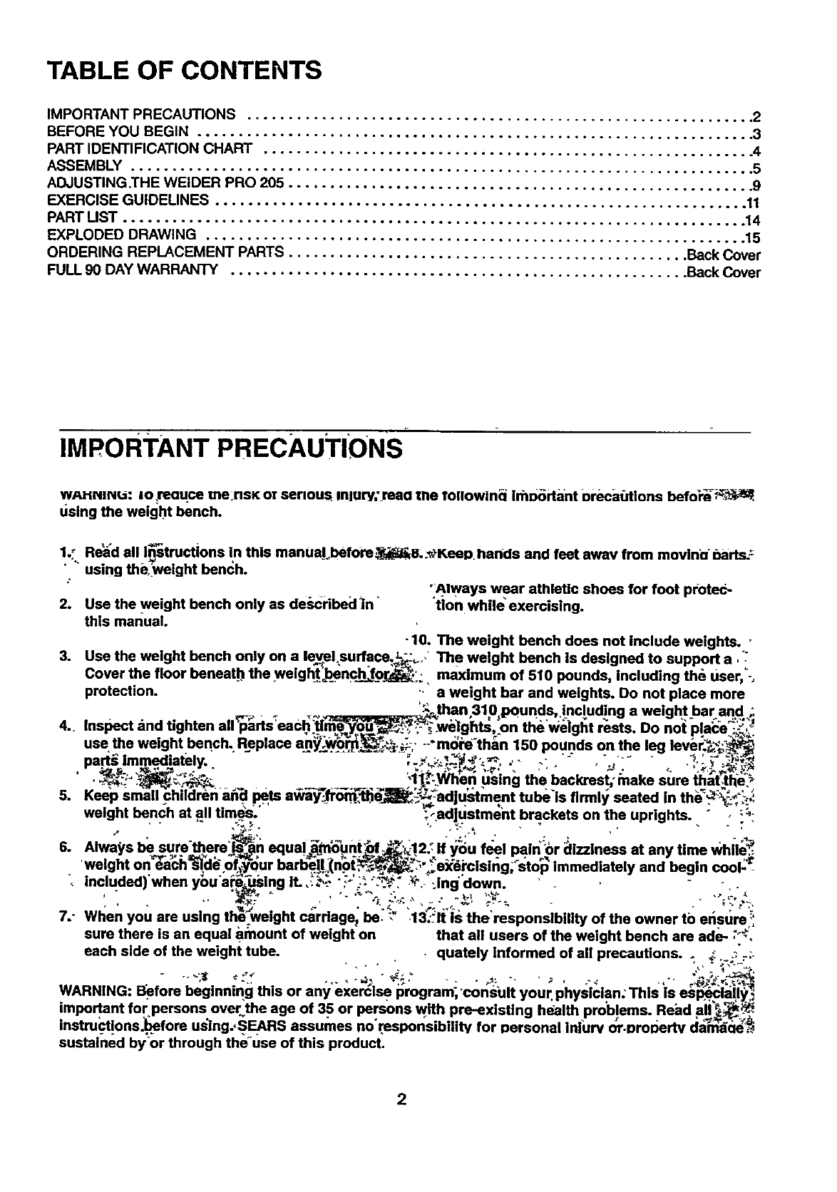 •The NAME of the product (WELDER=PRO 205 Weight Bench).