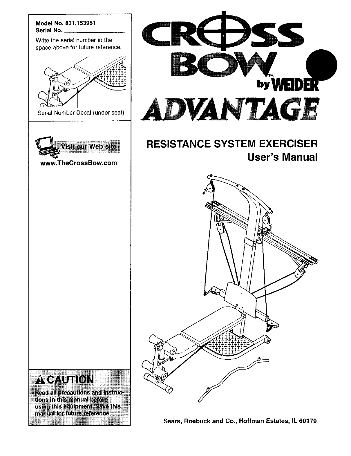 Weider 831153961 User Manual CROSSBOW ADVANTAGE Manuals And Guides L0304226