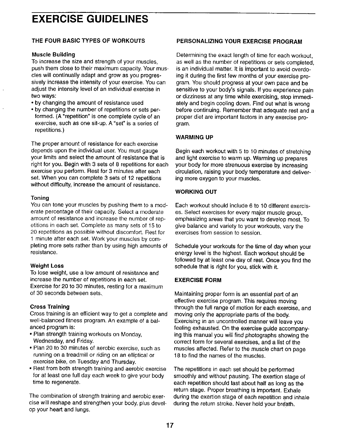 EXERCISE GUIDELINES ............................................................... 17