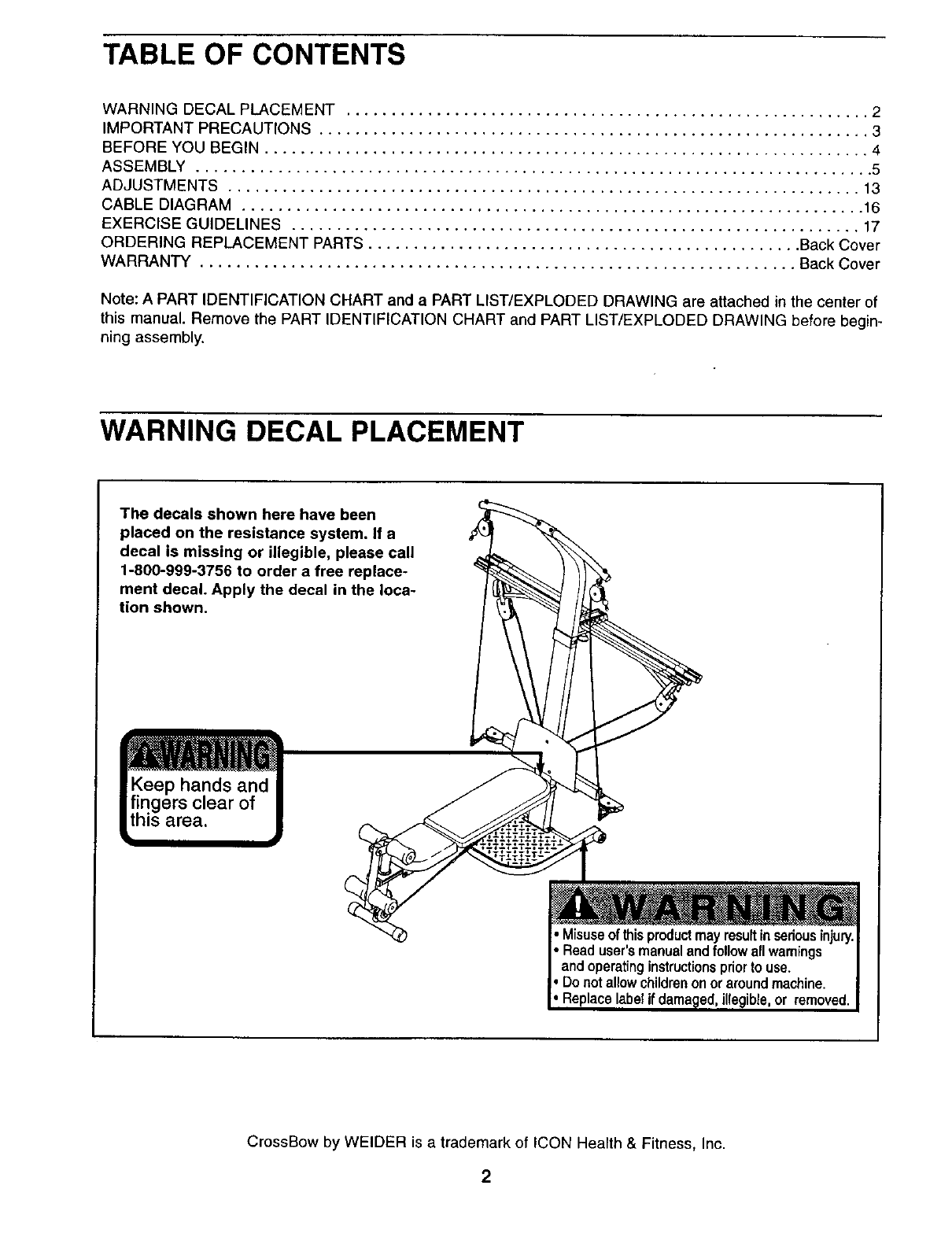 CrossBow by WELDER is a trademark of ICON Health & Fitness, Inc.