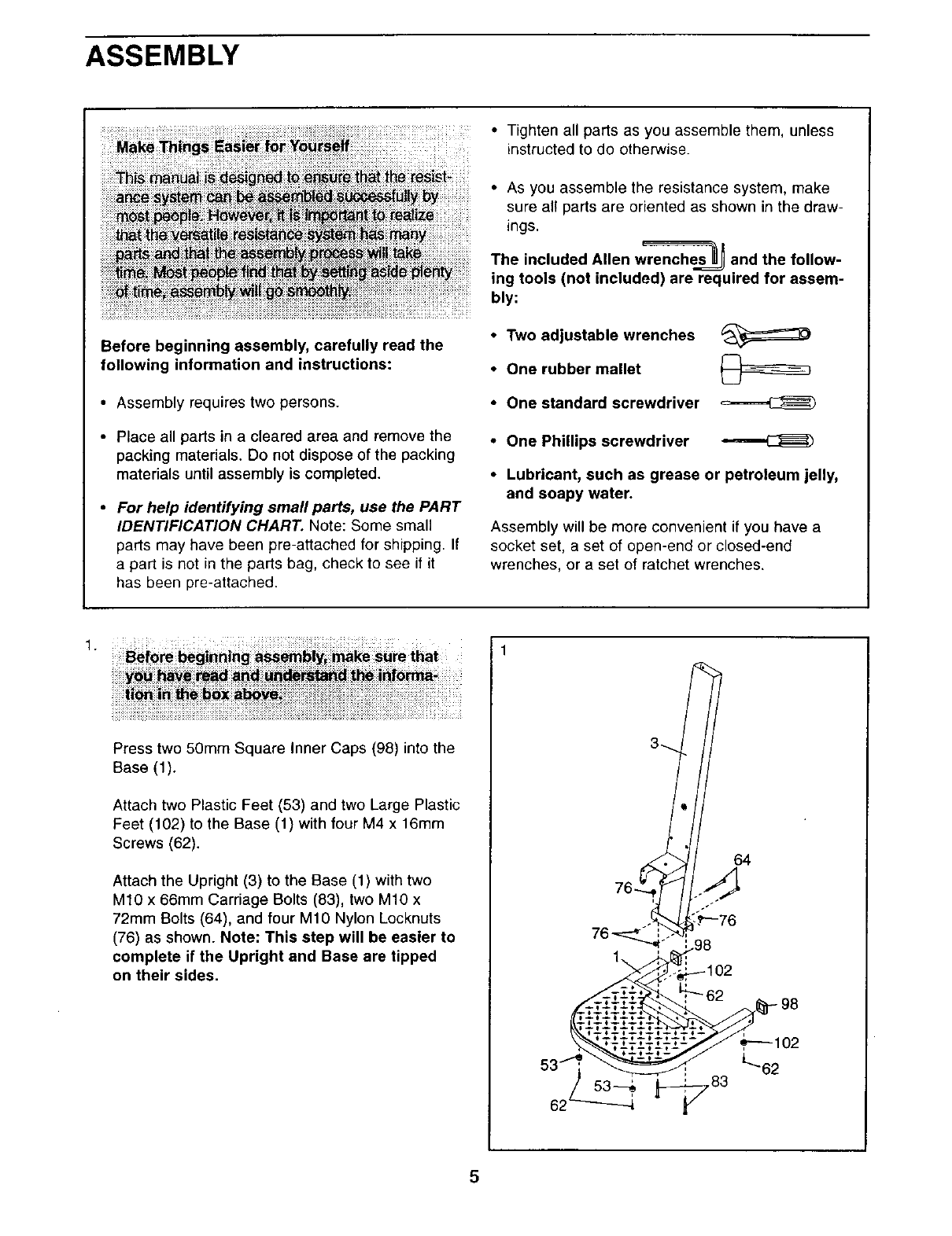 Before beginning assembly, carefully read the