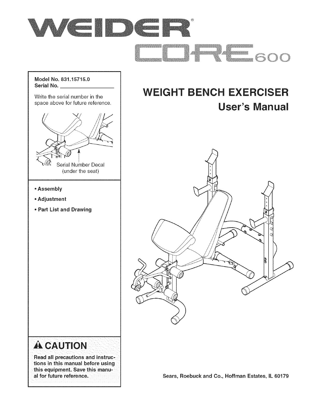 User Manual: Weider 831157150 831157150 WEIDER WEIDER CORE 600 - Manuals and Guides View the owners manual for your WEIDER WEIDER CORE 600 #831157150. Home:Fitness Equipment Parts:Weider Parts:Weider WEIDER CORE 600 Manual