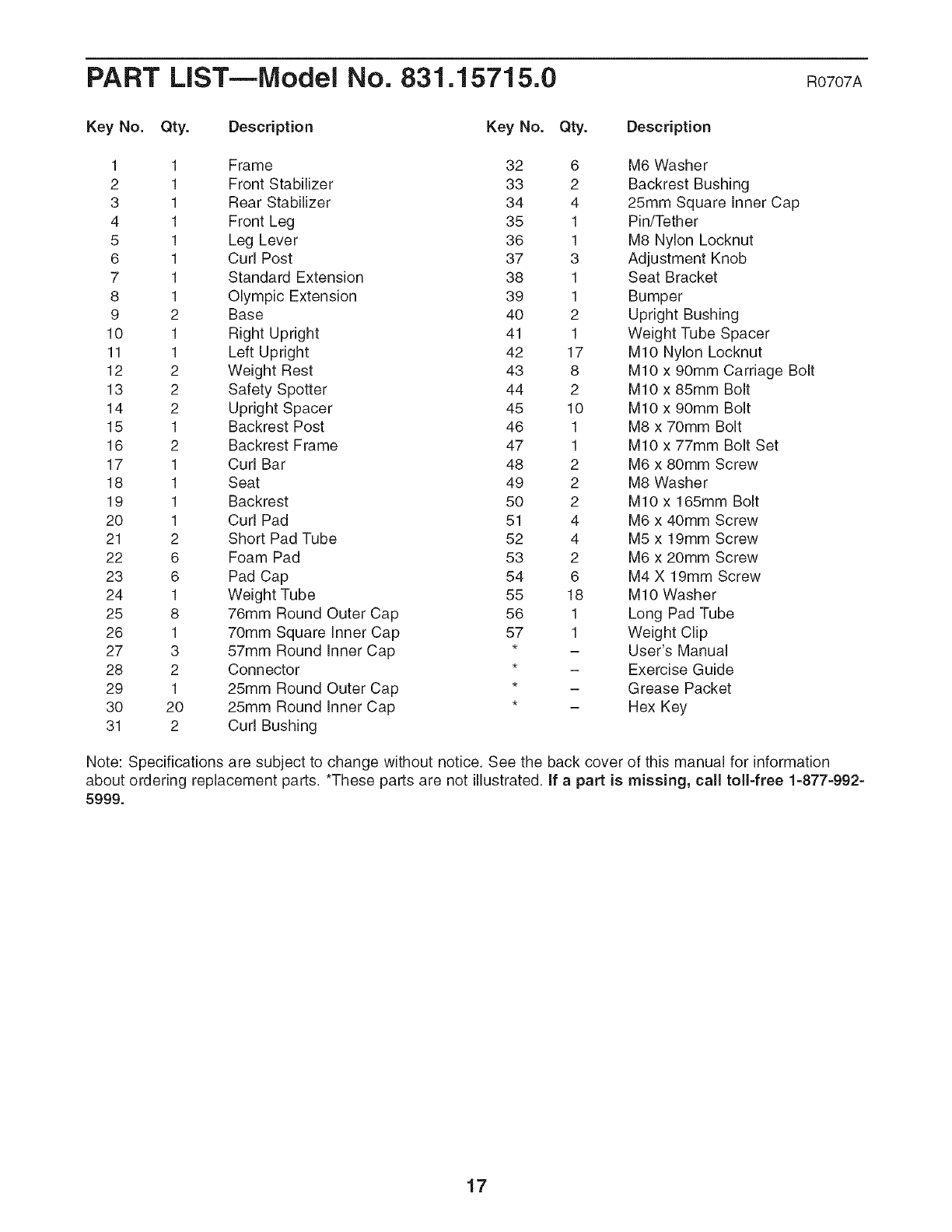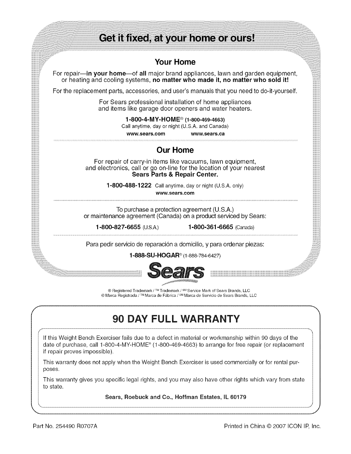 Part No. 254490 RO707A Printed in China © 2007 ICON IP, Inc.