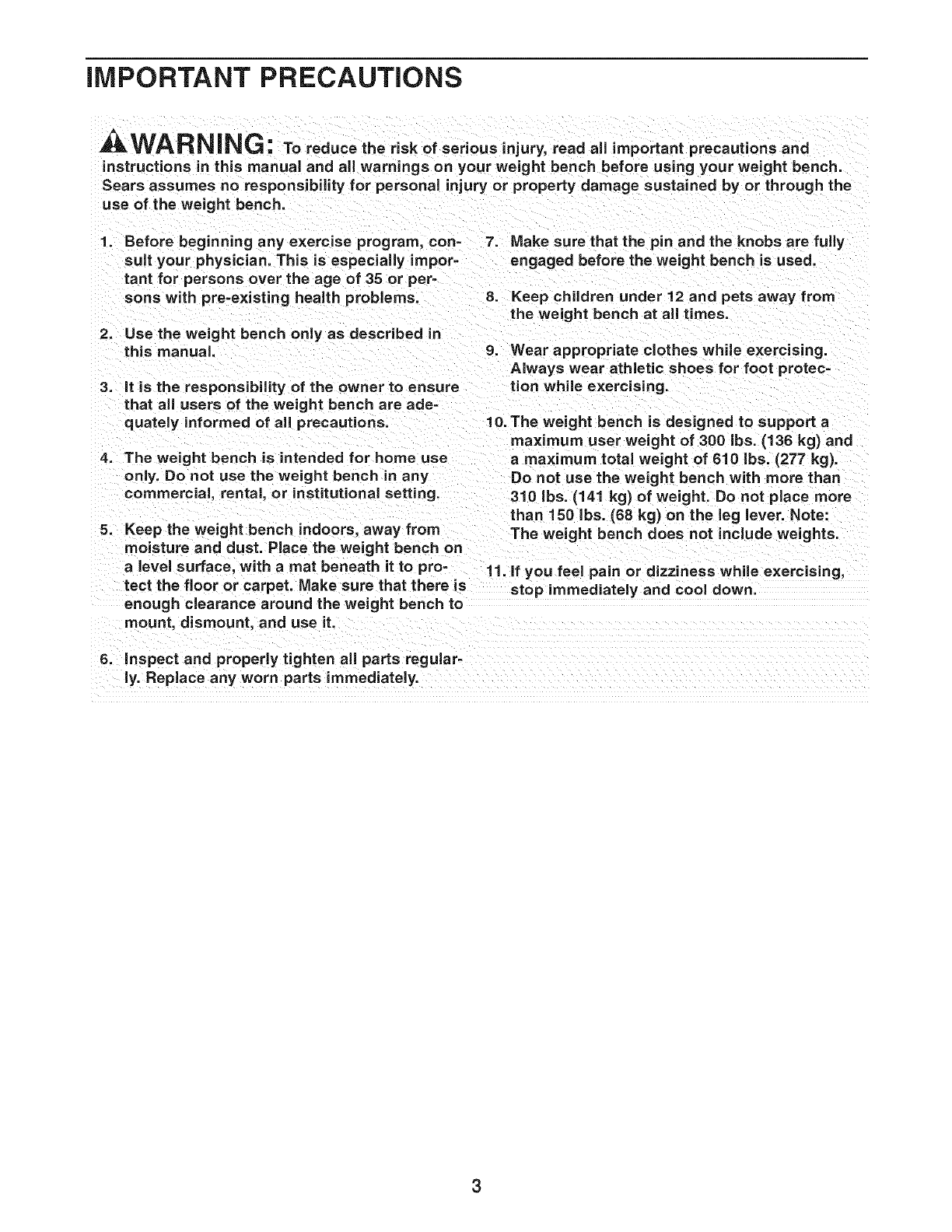 instructions in this manual and all warnings on your weight bench before using your weight bench.