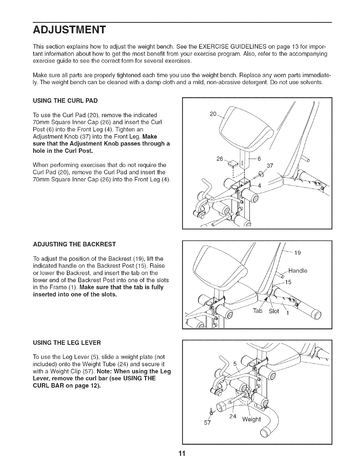 suit your physician. This is especially impor- engaged before the weight bench is used.