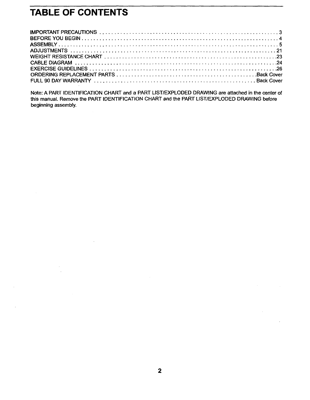 WEIGHT RESISTANCE CHART ........................................................... 23