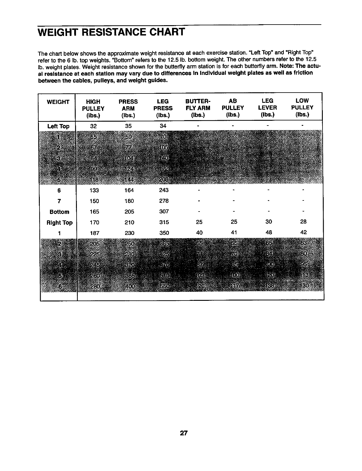 WEIGHT RESISTANCE CHART .......................................................... 27
