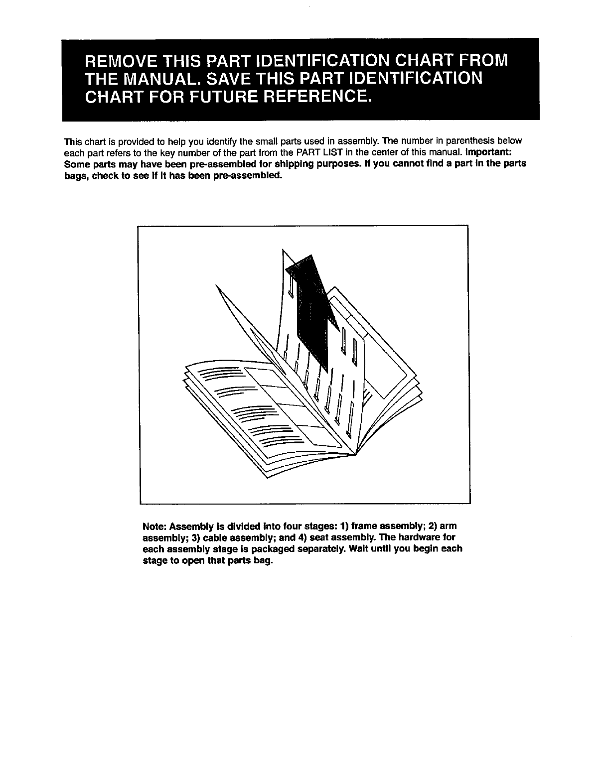 this manual. Remove the PART LIST/EXPLODED DRAWING and the PART IDENTIFICATION CHART before