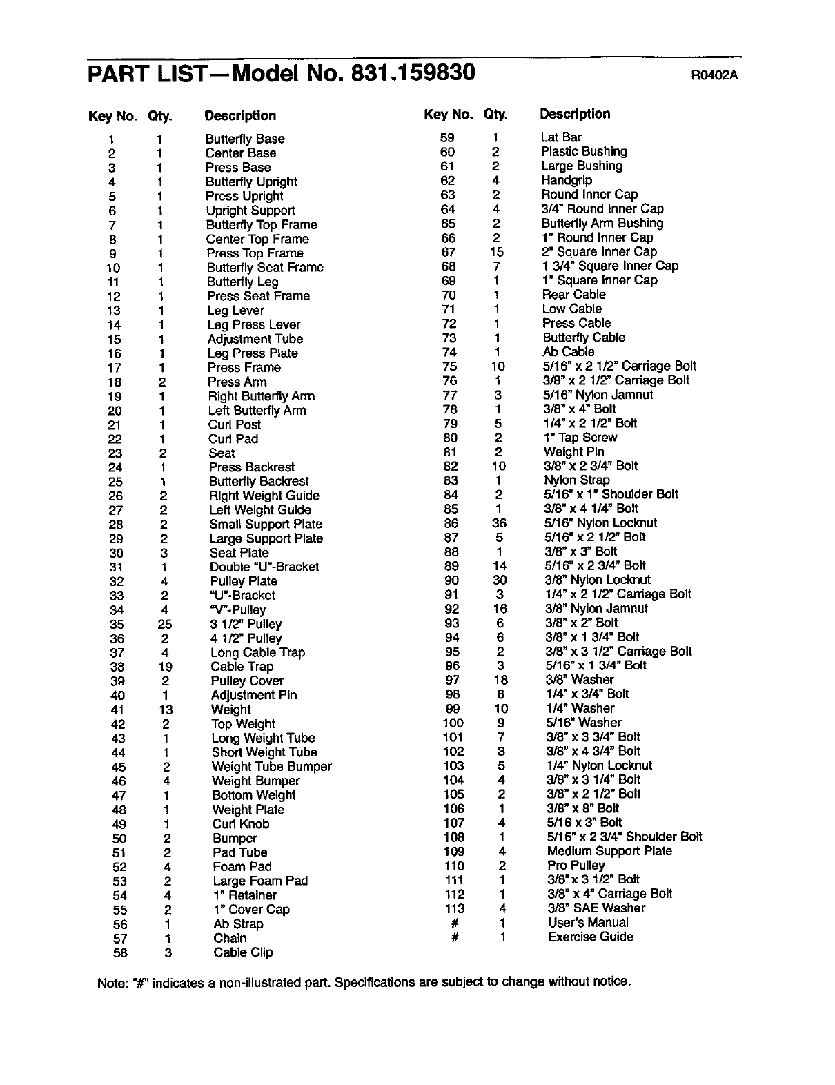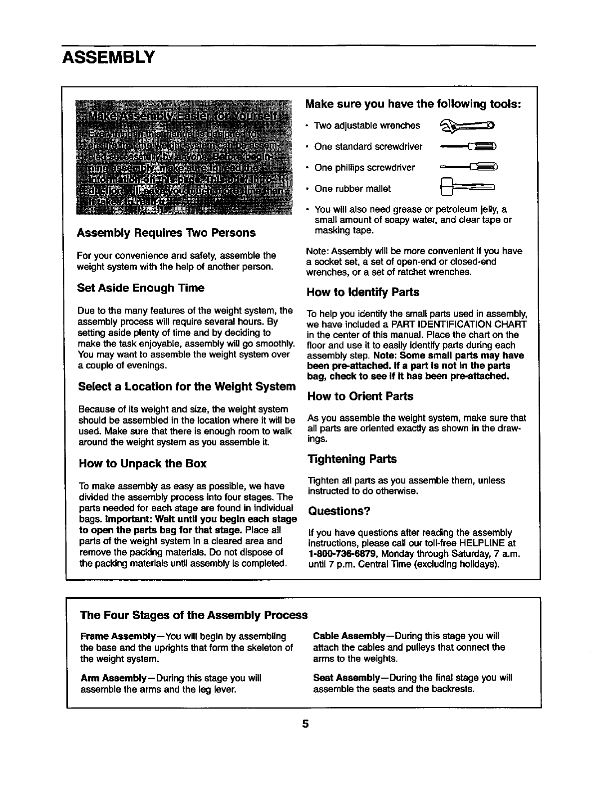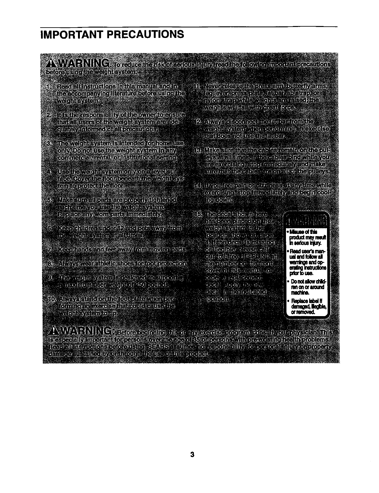 SEARS WEIGHT SYSTEM EXERCISER, contactthe nearest SEARS Service Center throughoutthe