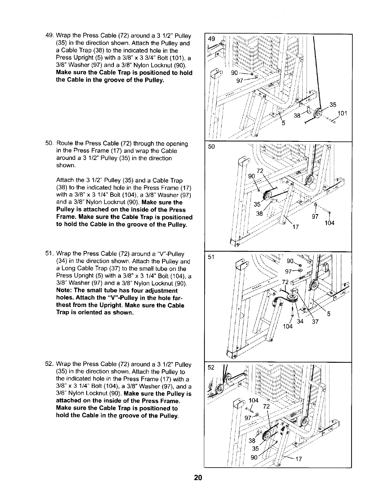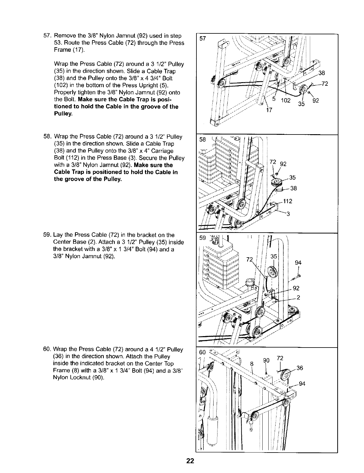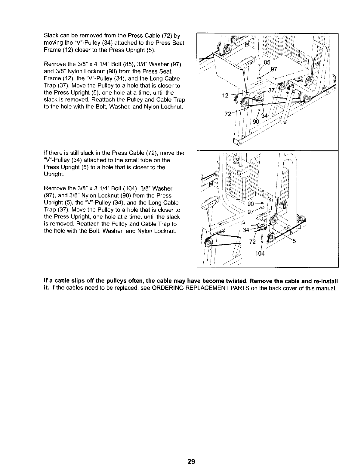 sure that the cables are on all of the pulleys.