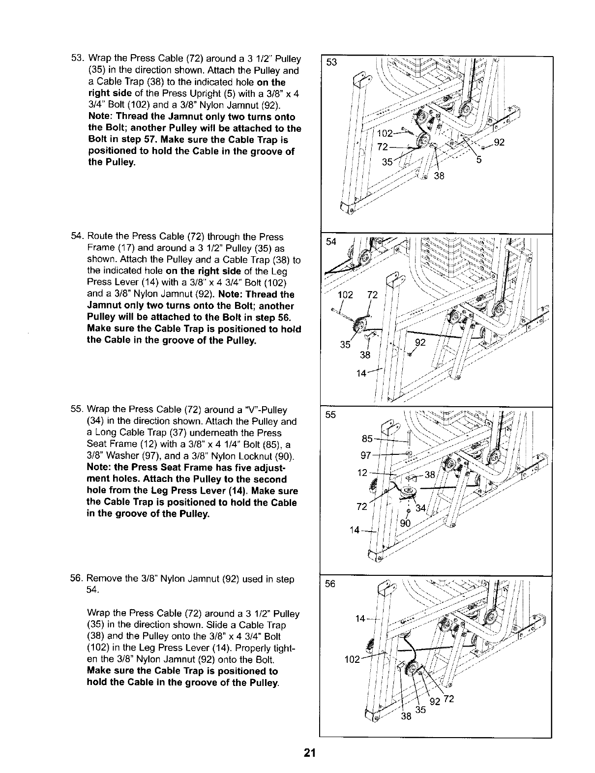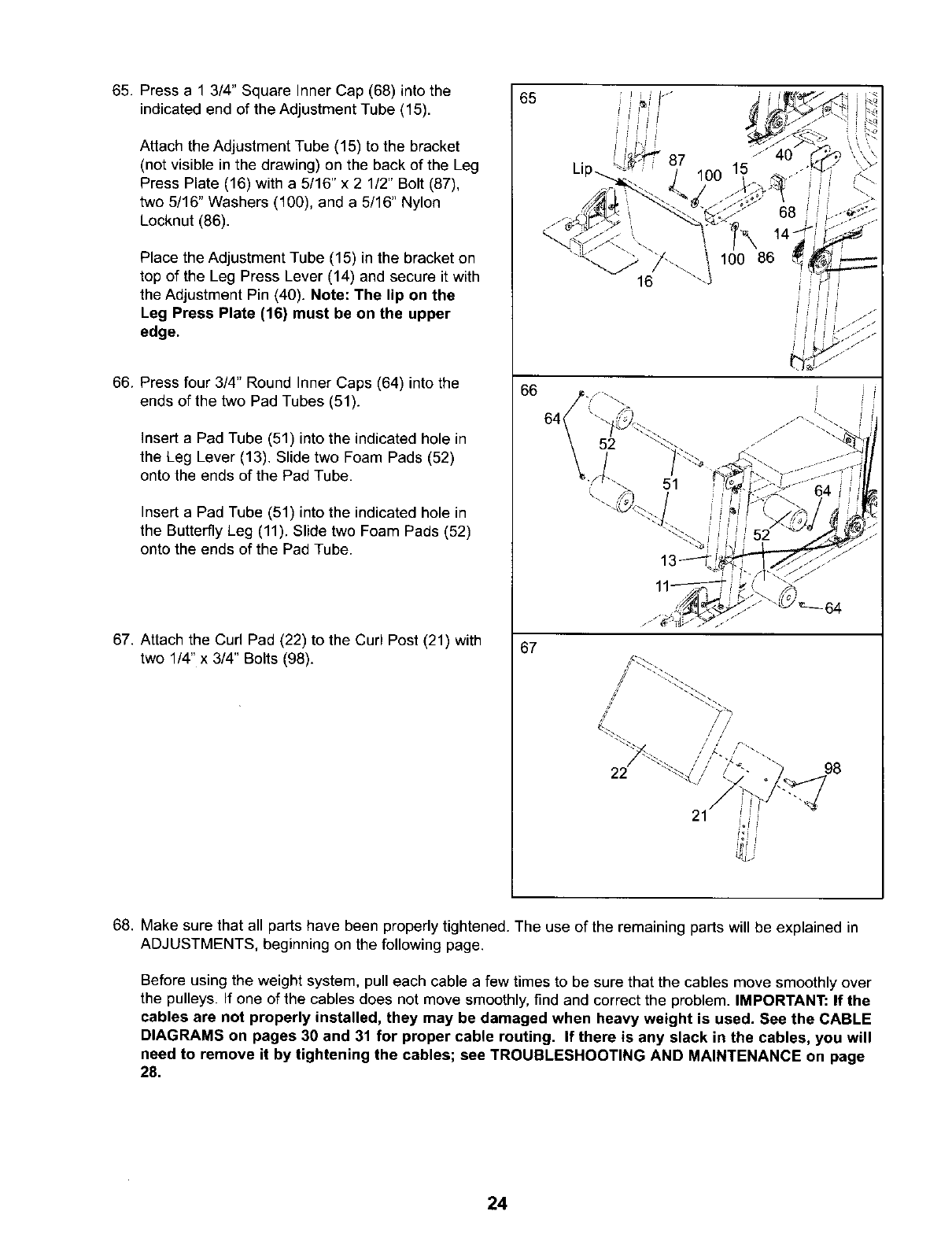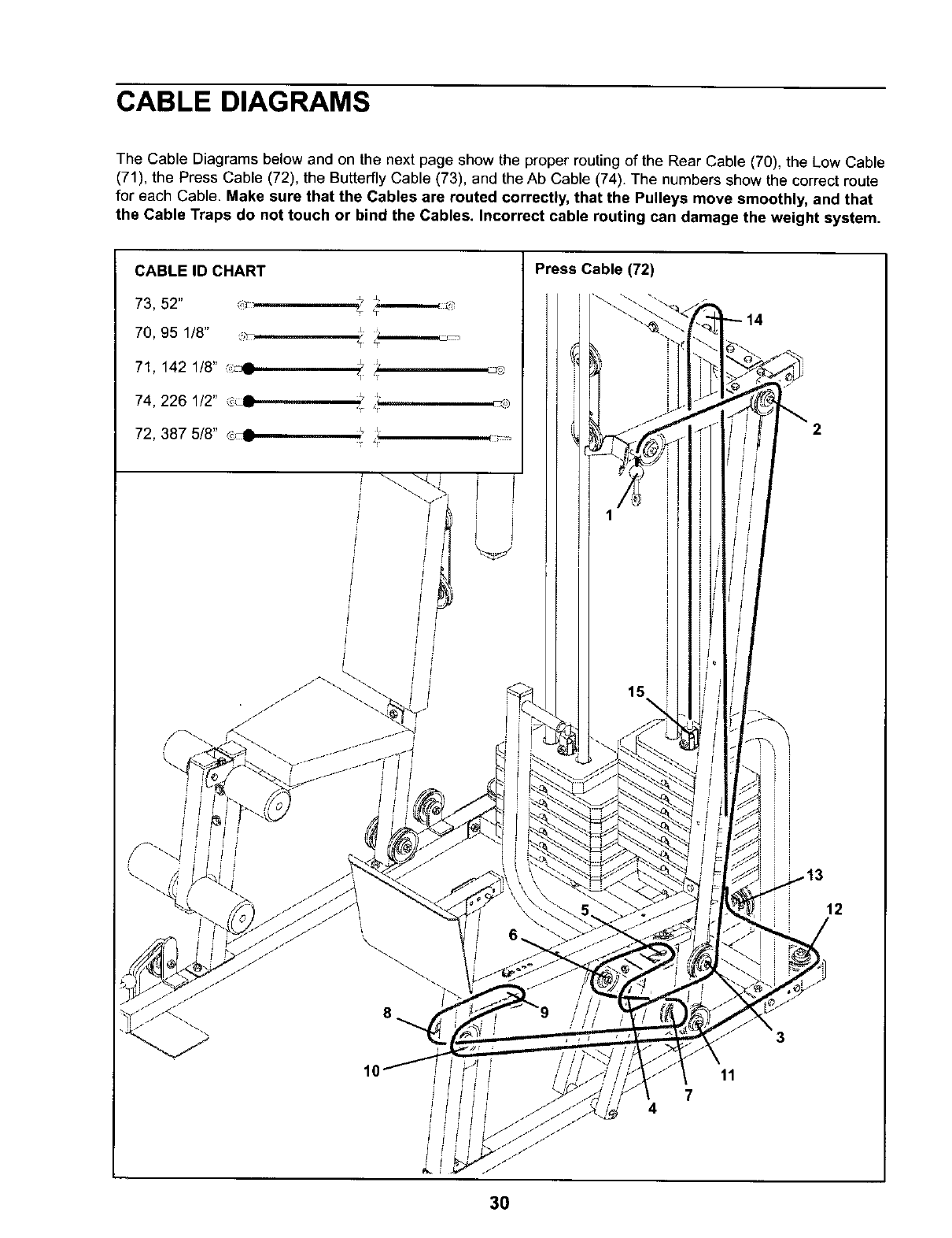 sure that the cables are on all of the pulleys.