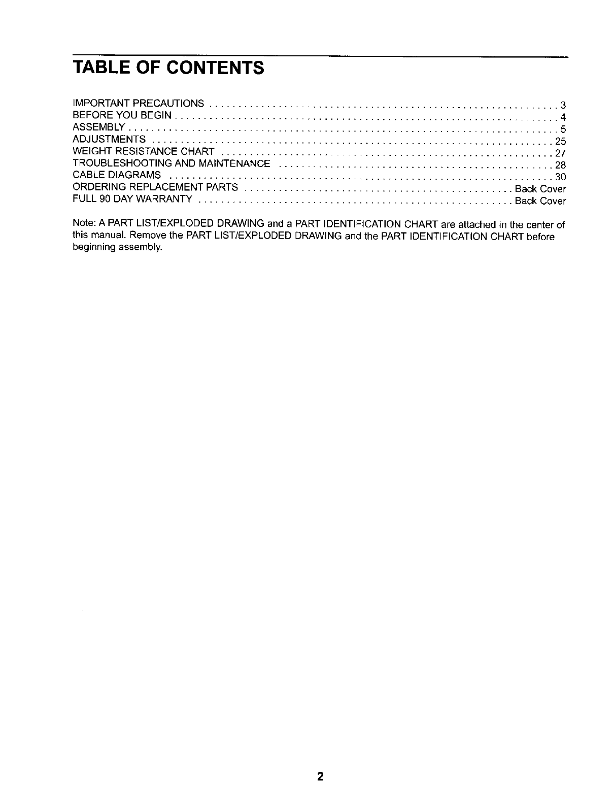 WEIGHT RESISTANCE CHART .......................................................... 27