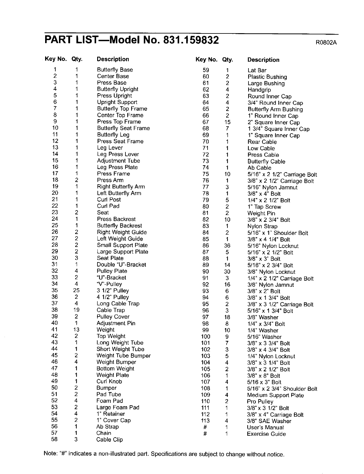 Note: "#" indicates a non-illustrated part. Specifications are subject to change without notice.