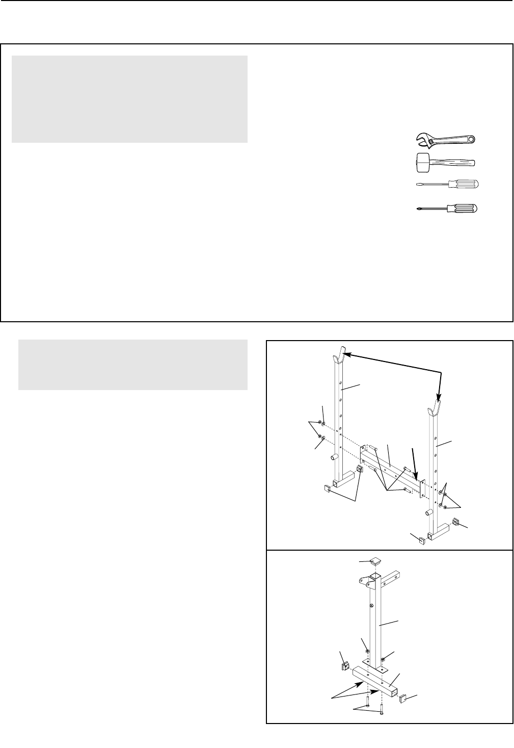 bell and weights, on the weight rests. Do not
