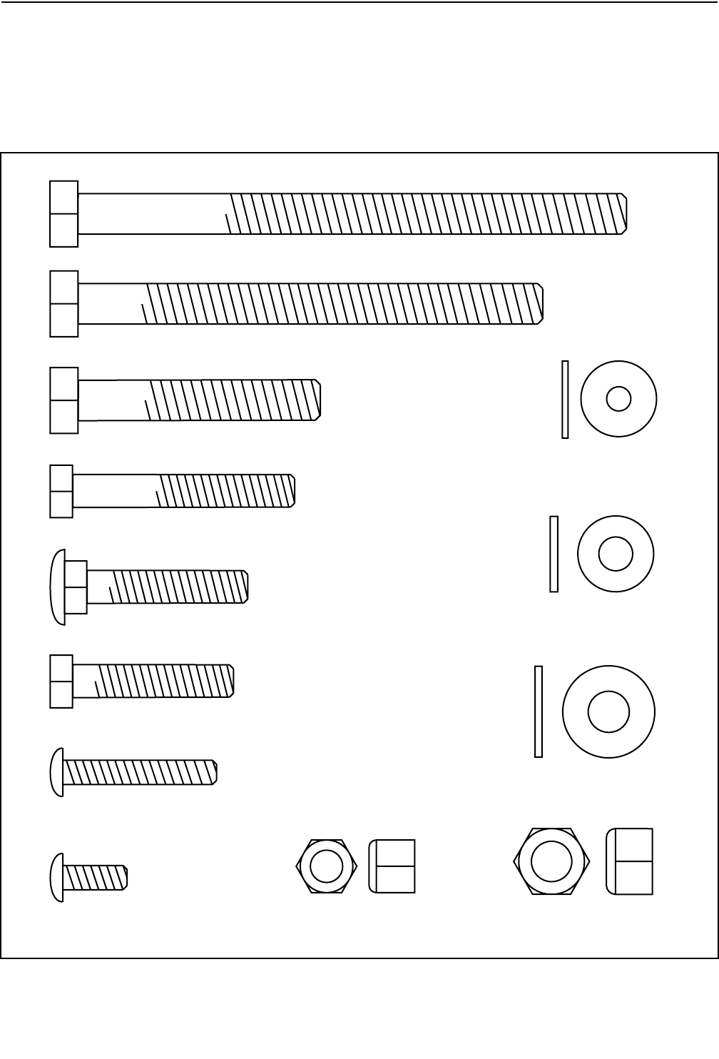 This chart is provided to help you identify the small parts used in assembly. The number in parenthesis below