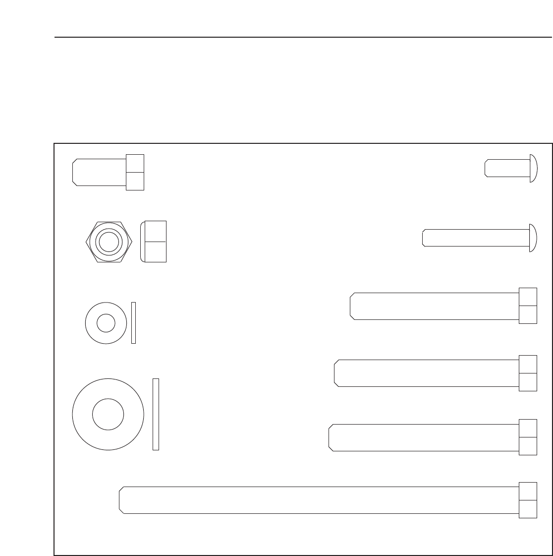 This chart is provided to help you identify the small parts used in assembly. The number in parenthesis below