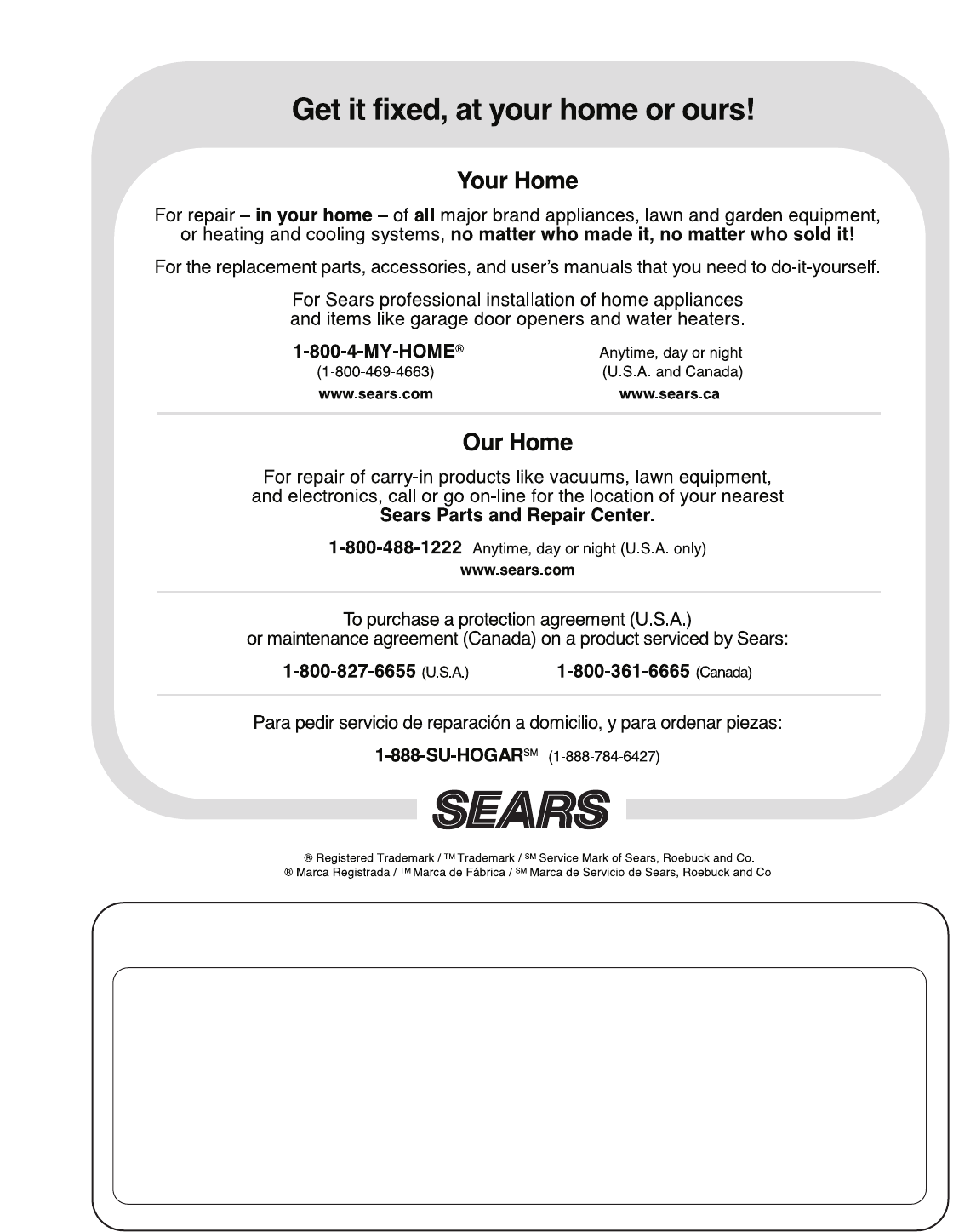 Sears, Roebuck and Co., Dept. 817WA, Hoffman Estates, IL 60179