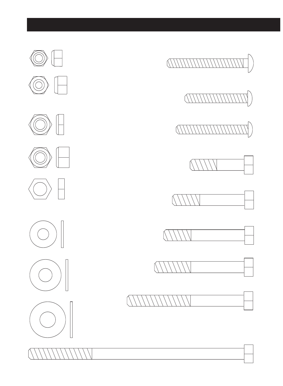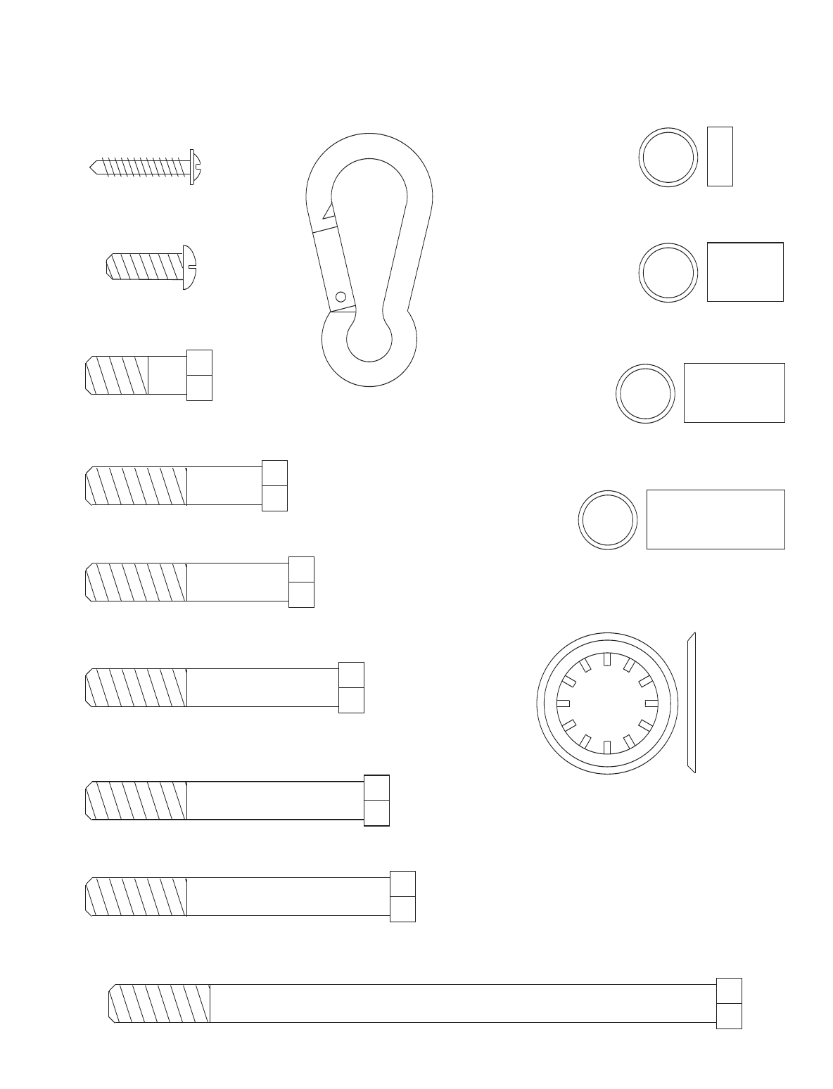 This chart is provided to help you identify the small parts used in assembly. Important: Some parts may