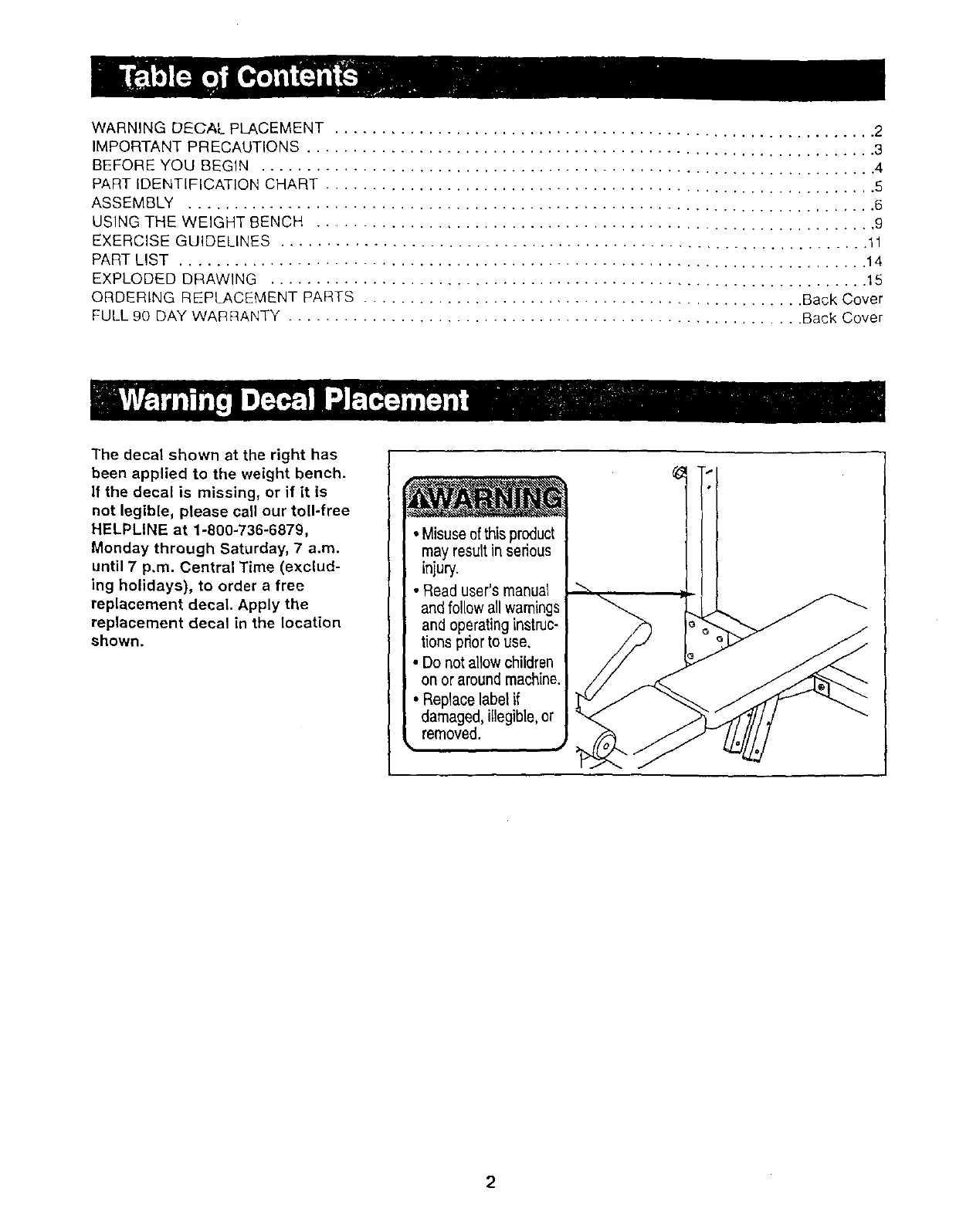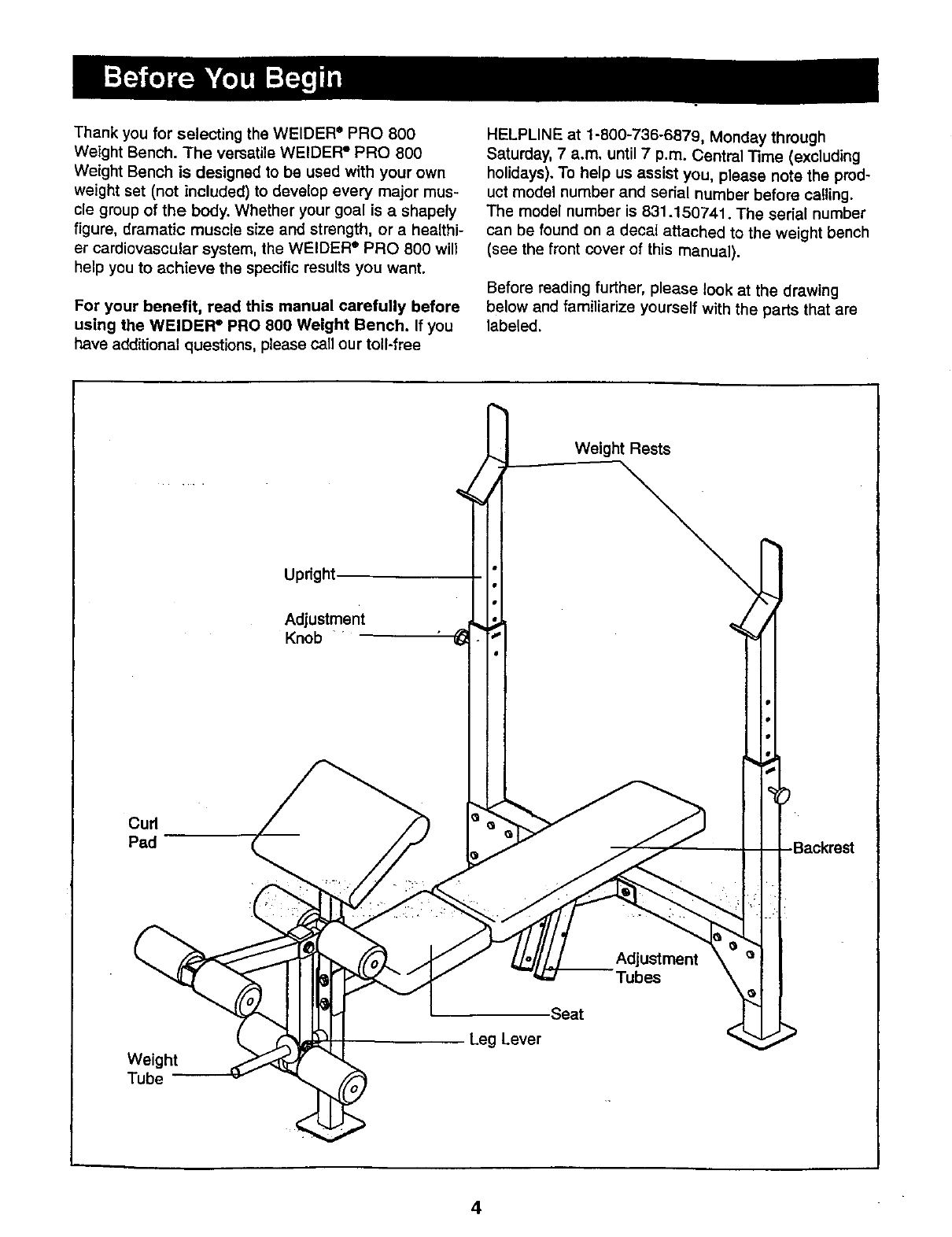 • The NAME of the product (WELDER ® PRO 800 Weight Bench)