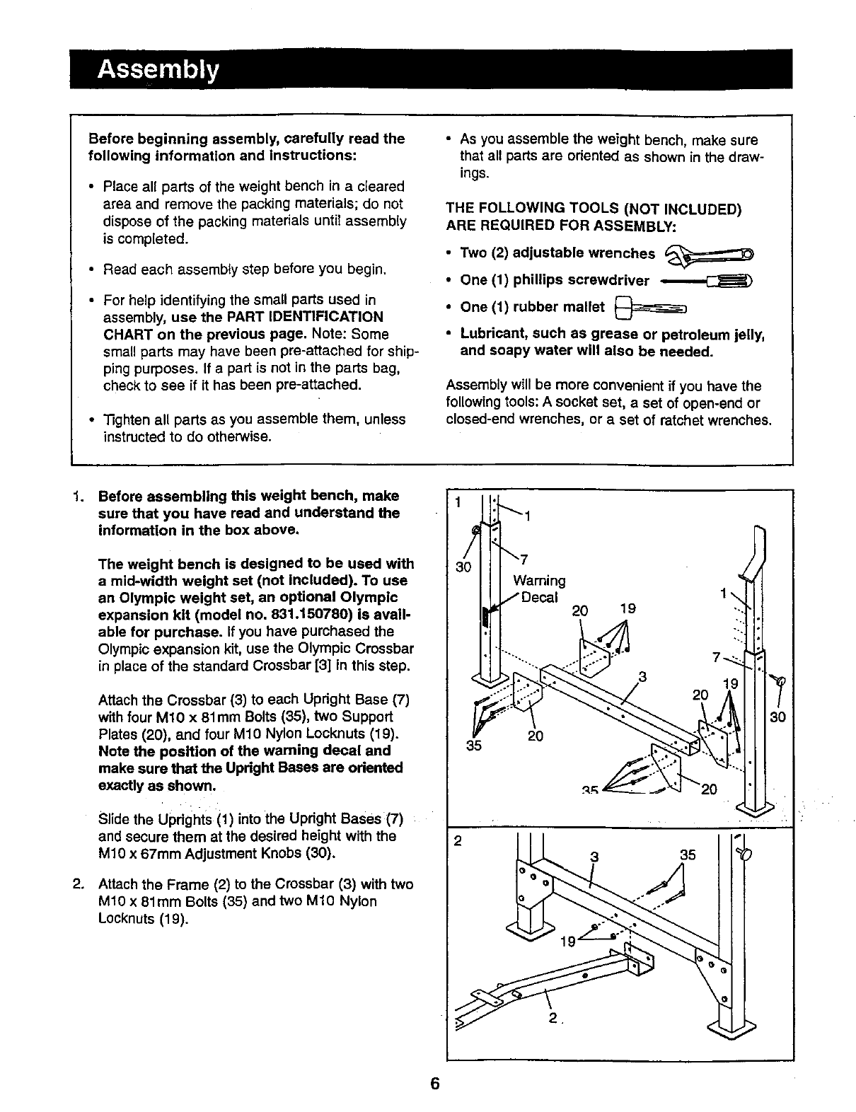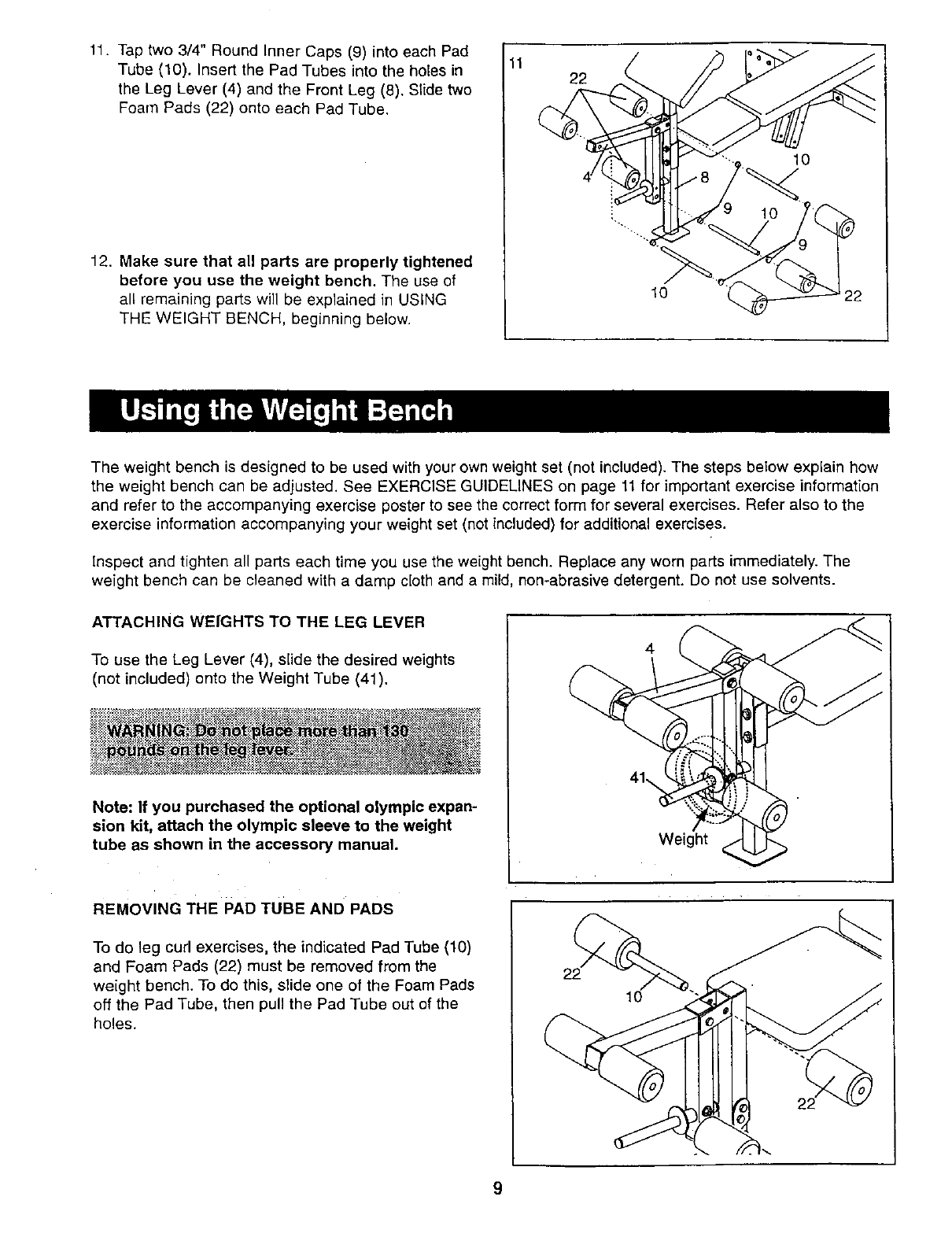 WEIDER Weight System Manual L0011130 WEIDER Weight System Owner's Manual, WEIDER Weight System installation guides