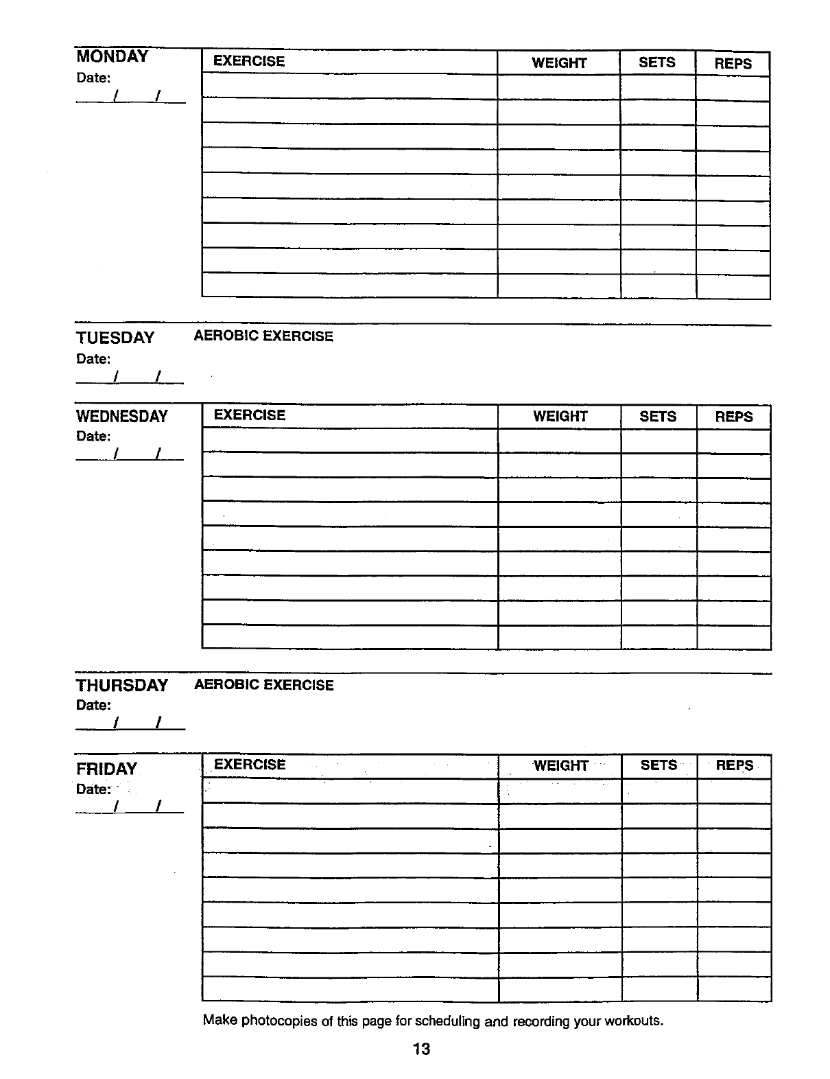 Make photocopiesofthispage for schedulingand recordingyourworkouts.