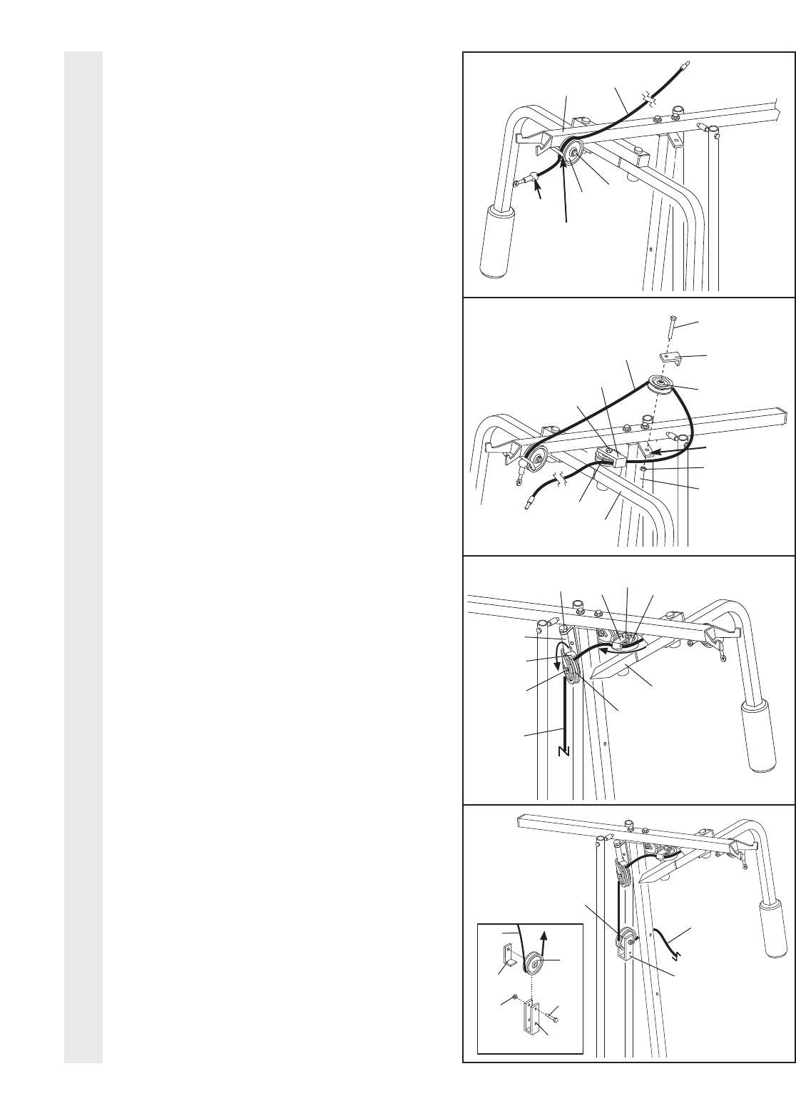 sure that the cables are on all of the pulleys.