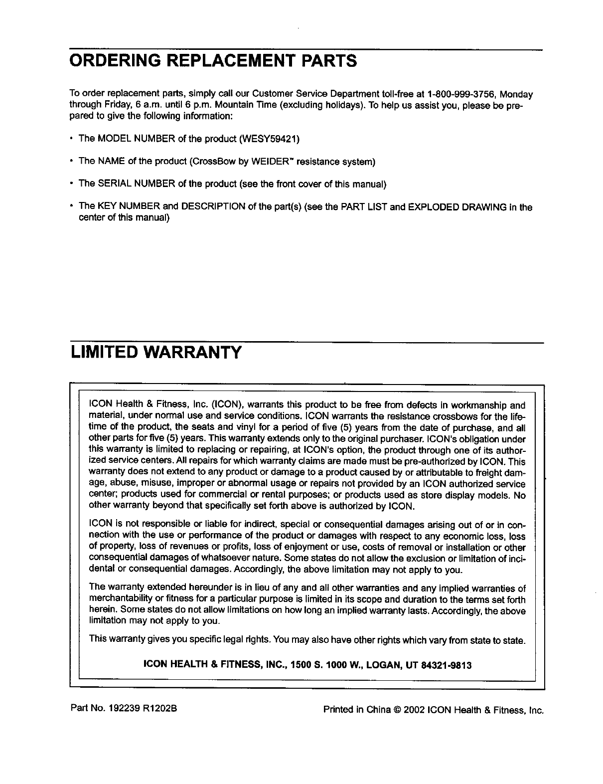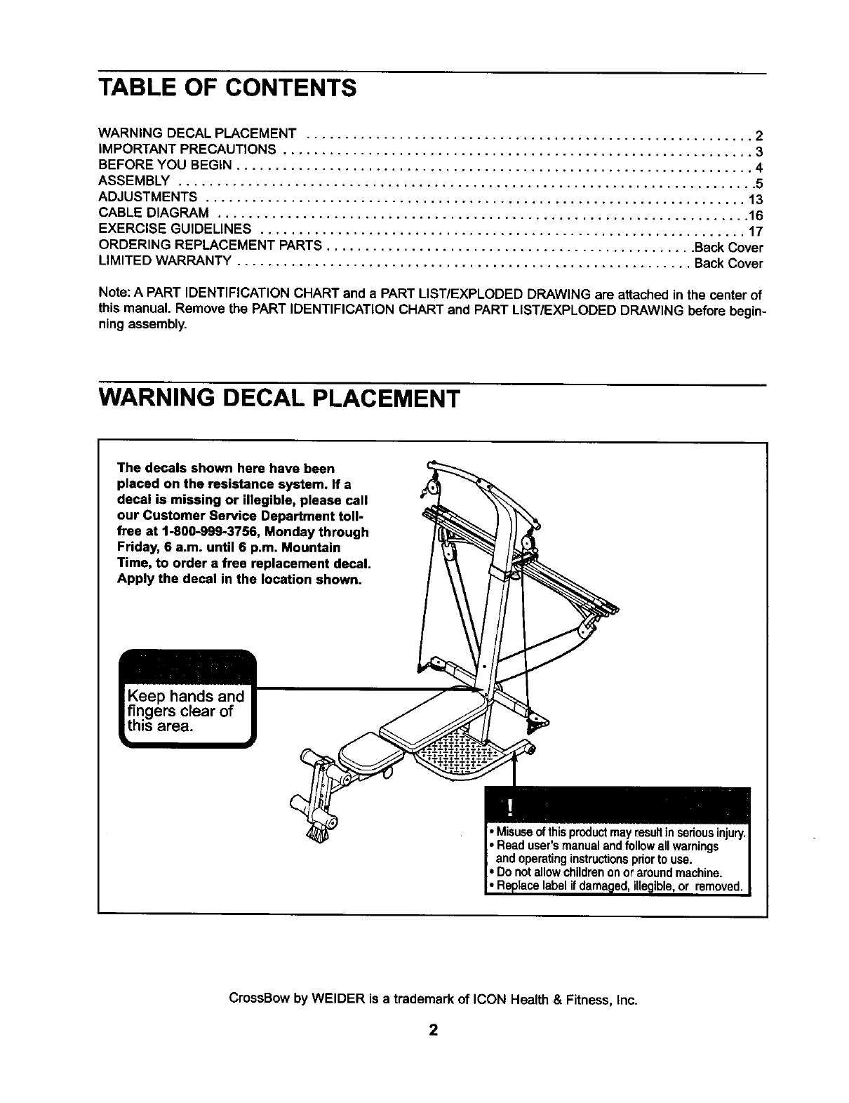 CrossBow by WELDER is a trademark of ICON Health & Fitness, Inc.