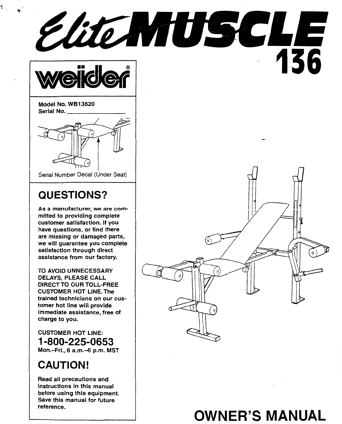 Weider Elite Muscle 136 Bench Wb1362 Users Manual
