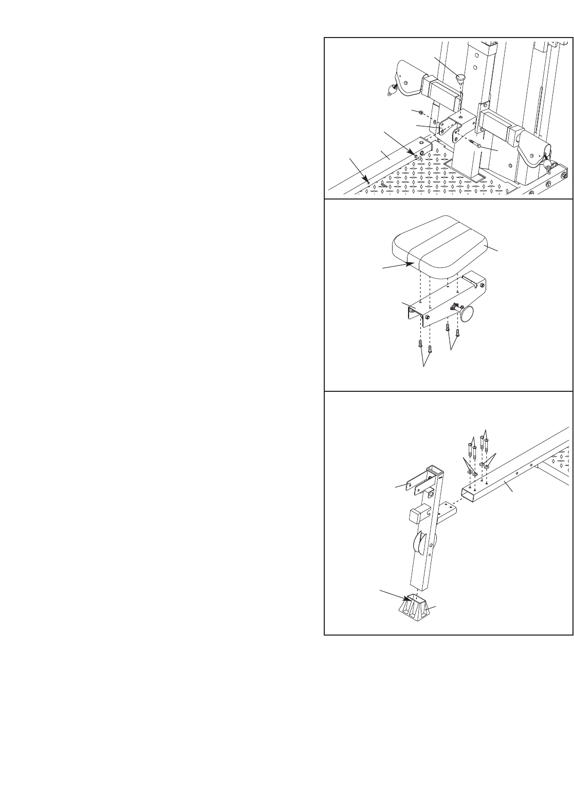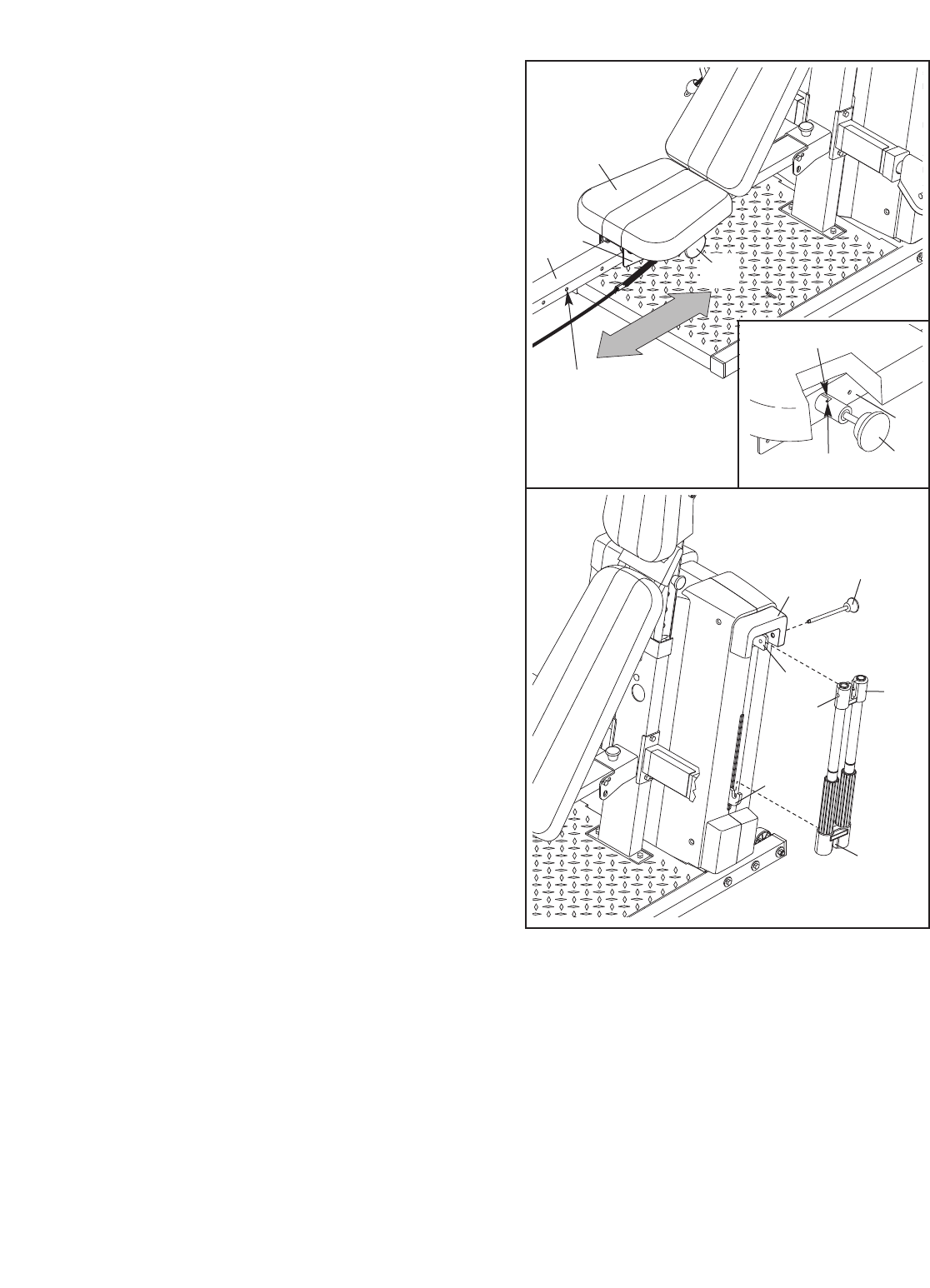 bench, with the seat in one of the three posi-