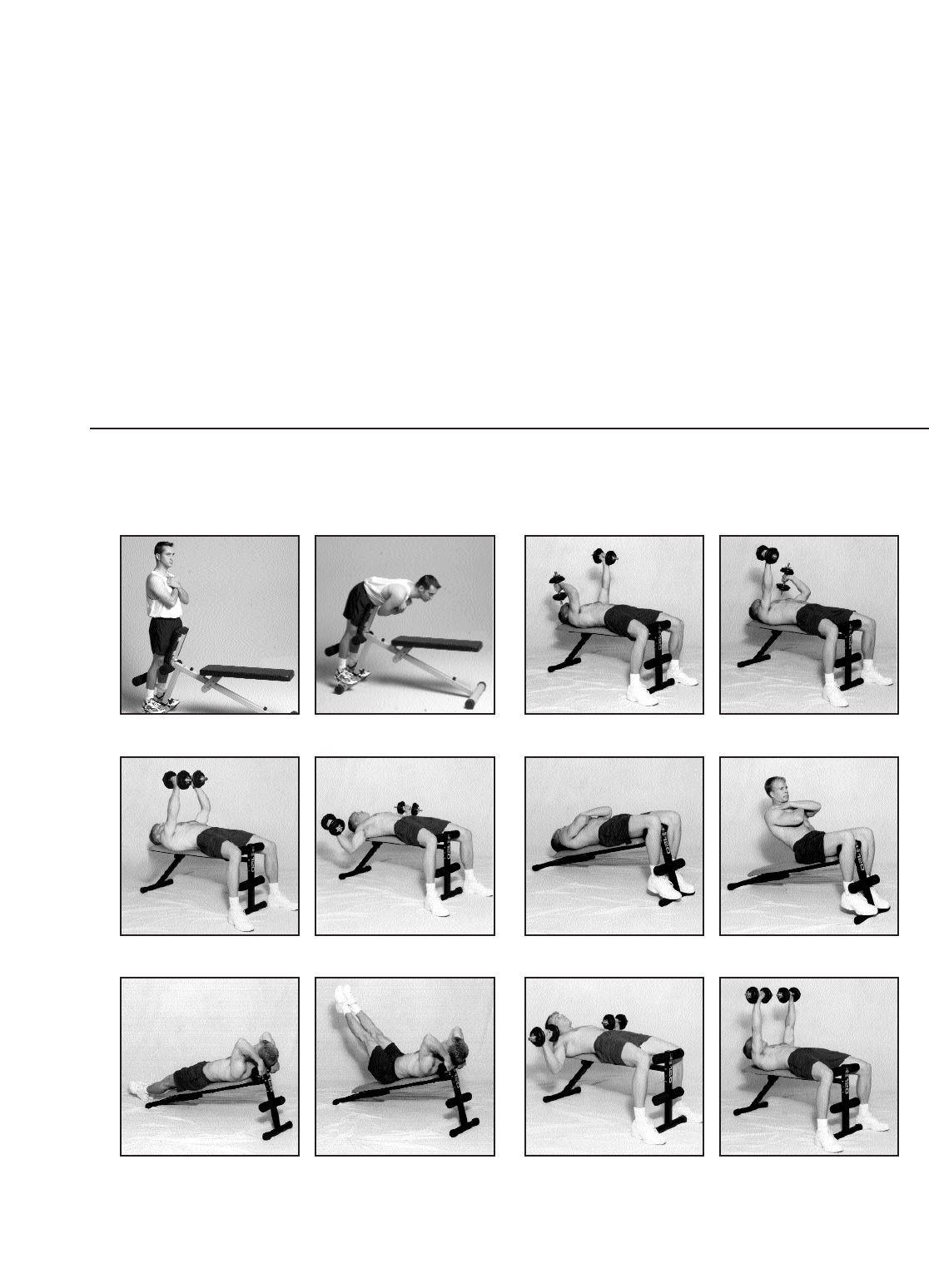 Ces dessins indiquent une variété d’ exercices qui peuvent être faits avec le banc d’exercices. Remarque : votre