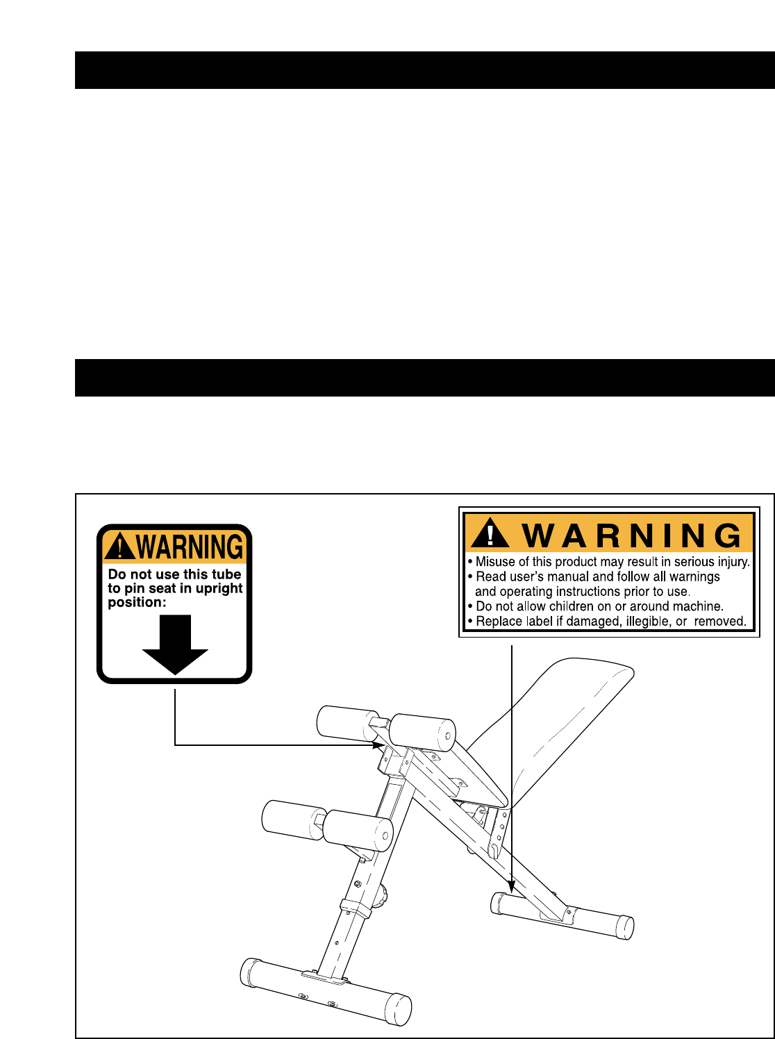 The decal shown below has been placed on the weight bench. If the decal is missing, or if it is not legi-