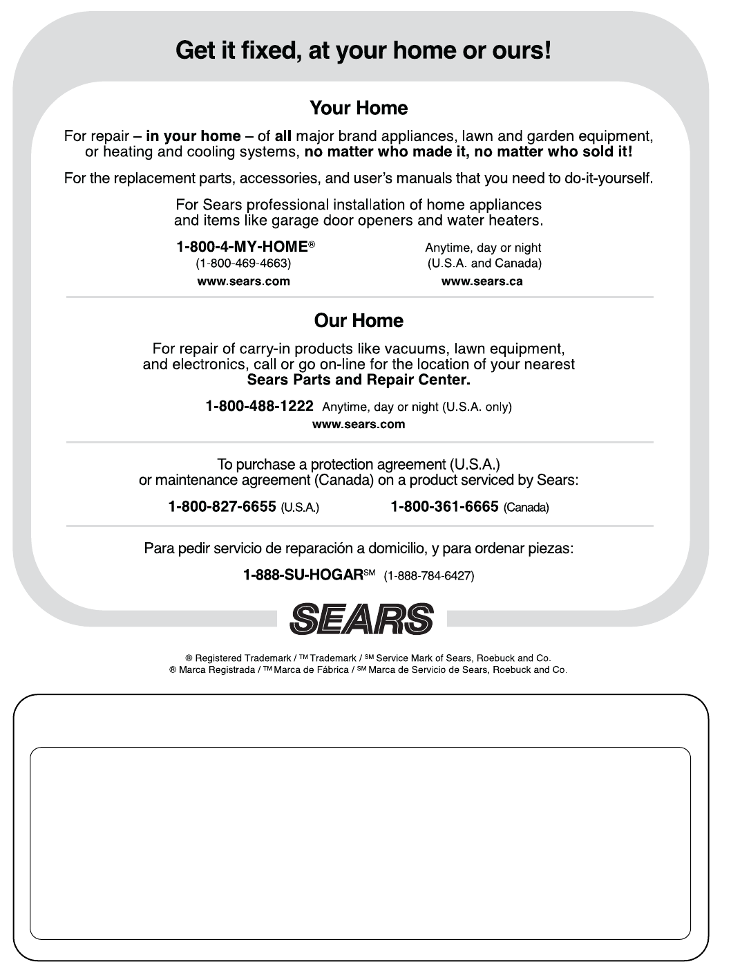 Part No. 206758 R1203A Printed in China © 2003 Sears, Roebuck and Co.