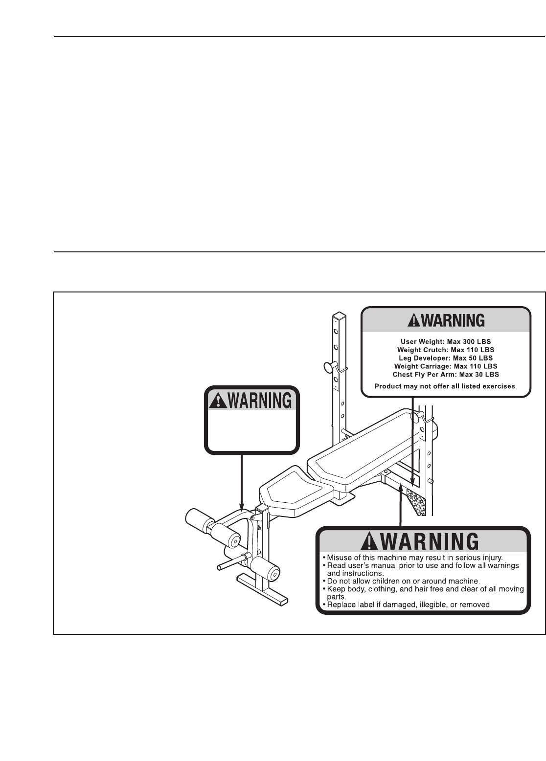 warnings on the weight bench before using