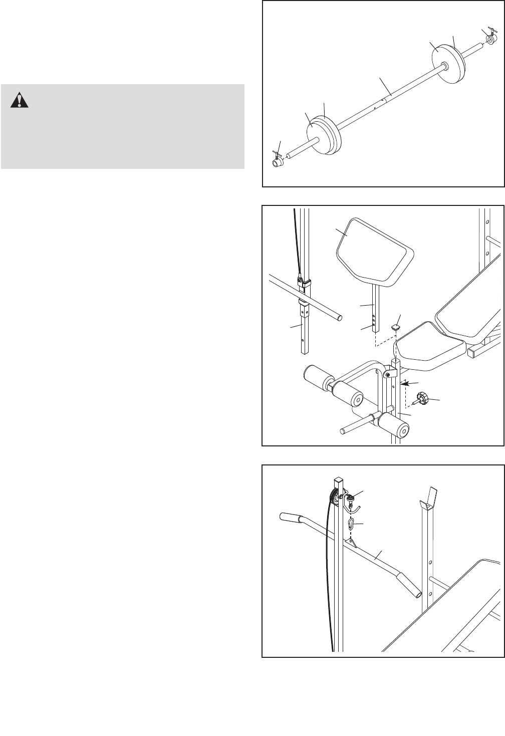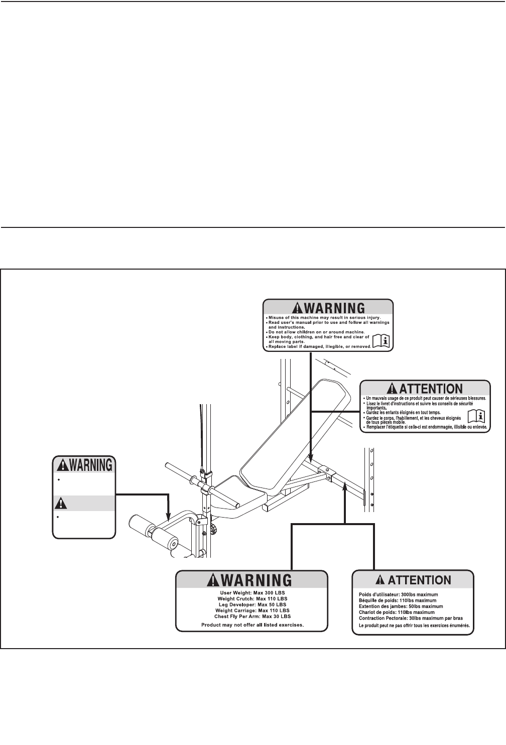 se trouvant sur le banc de poids, avant dʼutiliser votre banc de poids. ICON ne peut être tenu res-