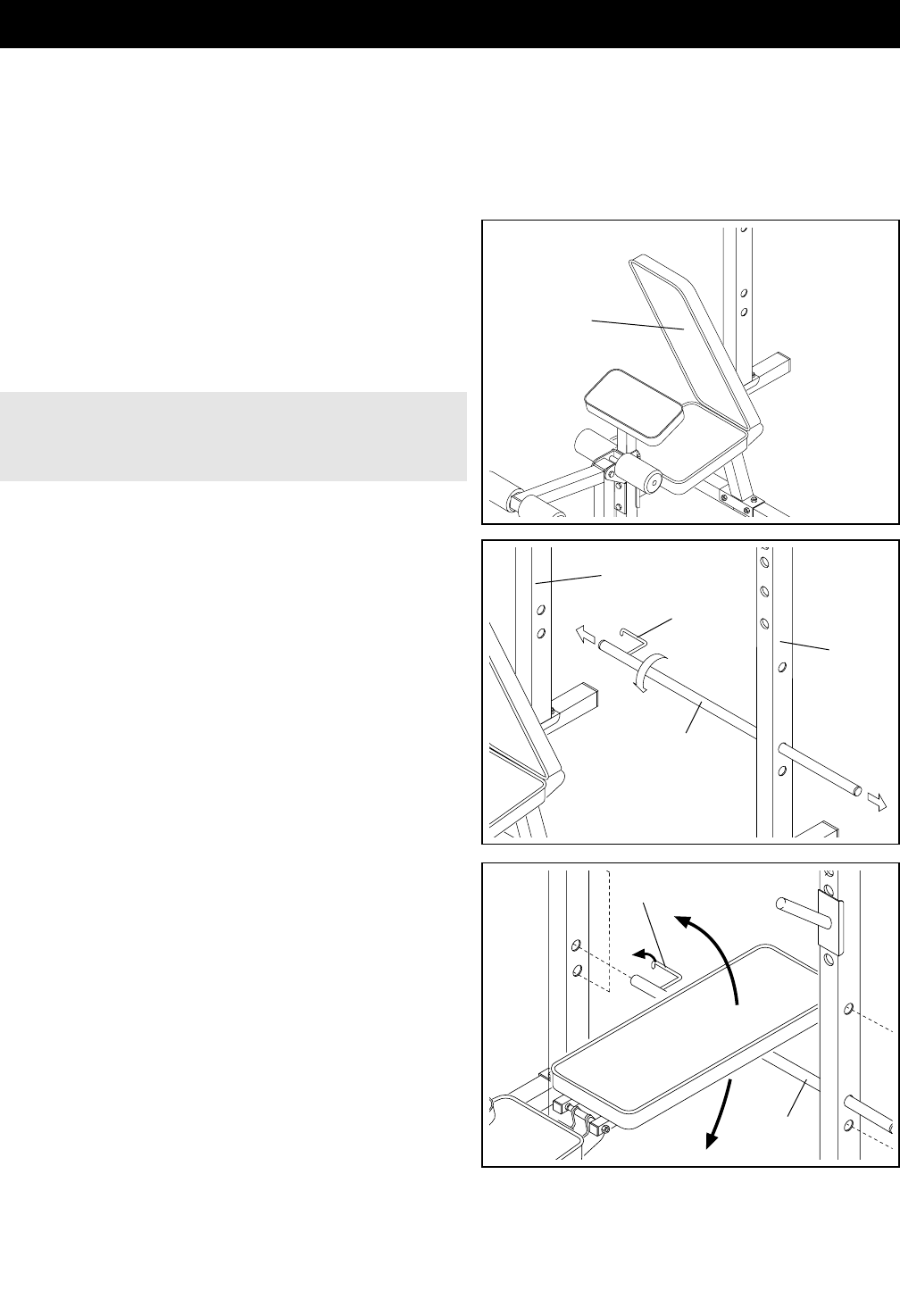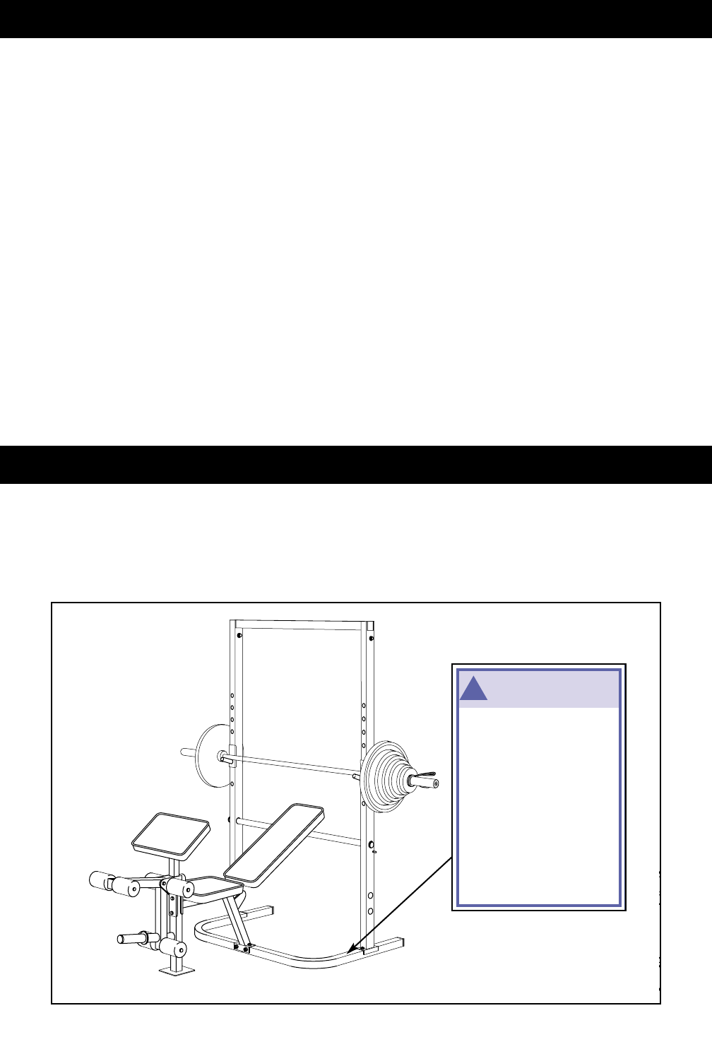 The decal shown below has been placed on the weight bench. If the decal is missing, or if it is not legi-