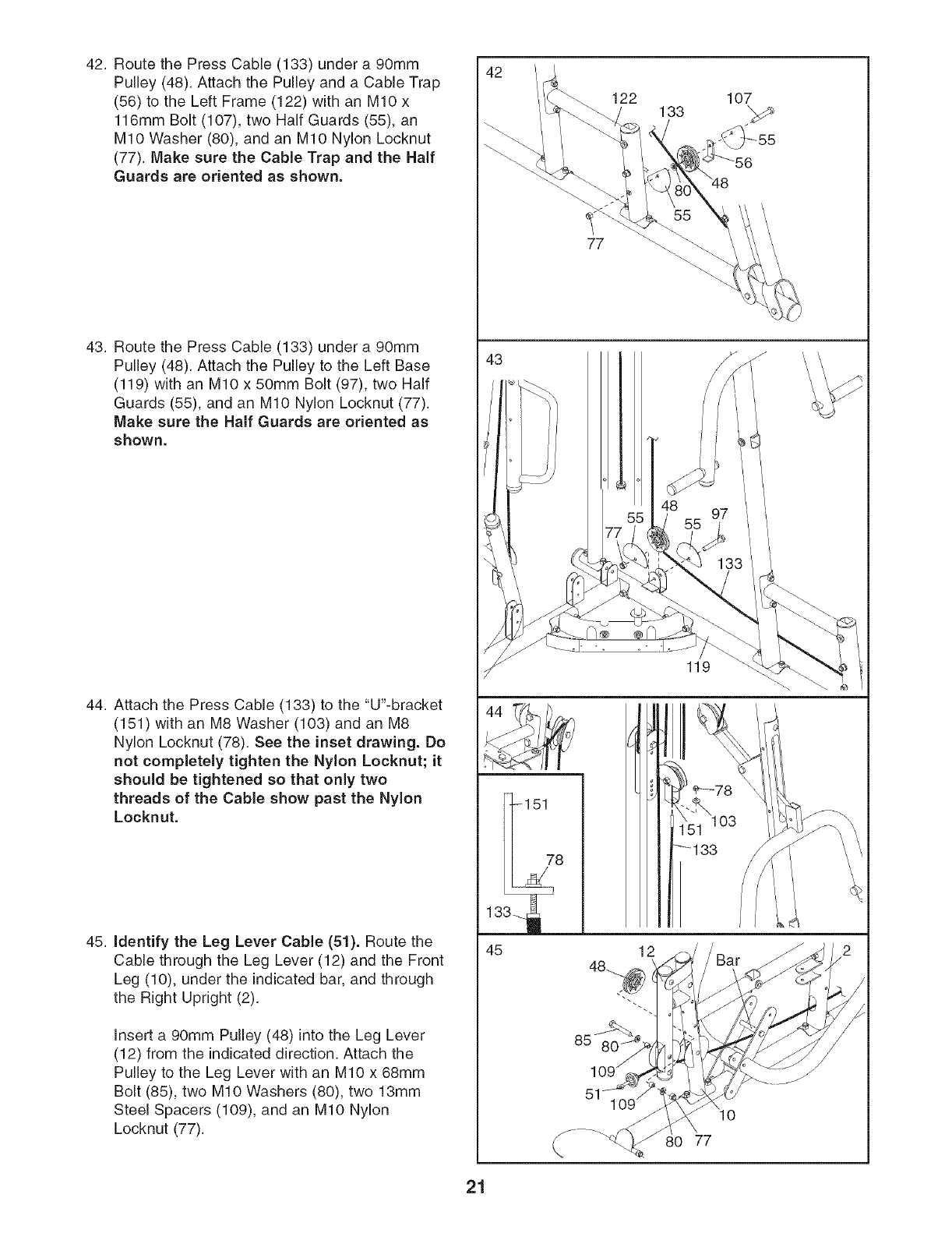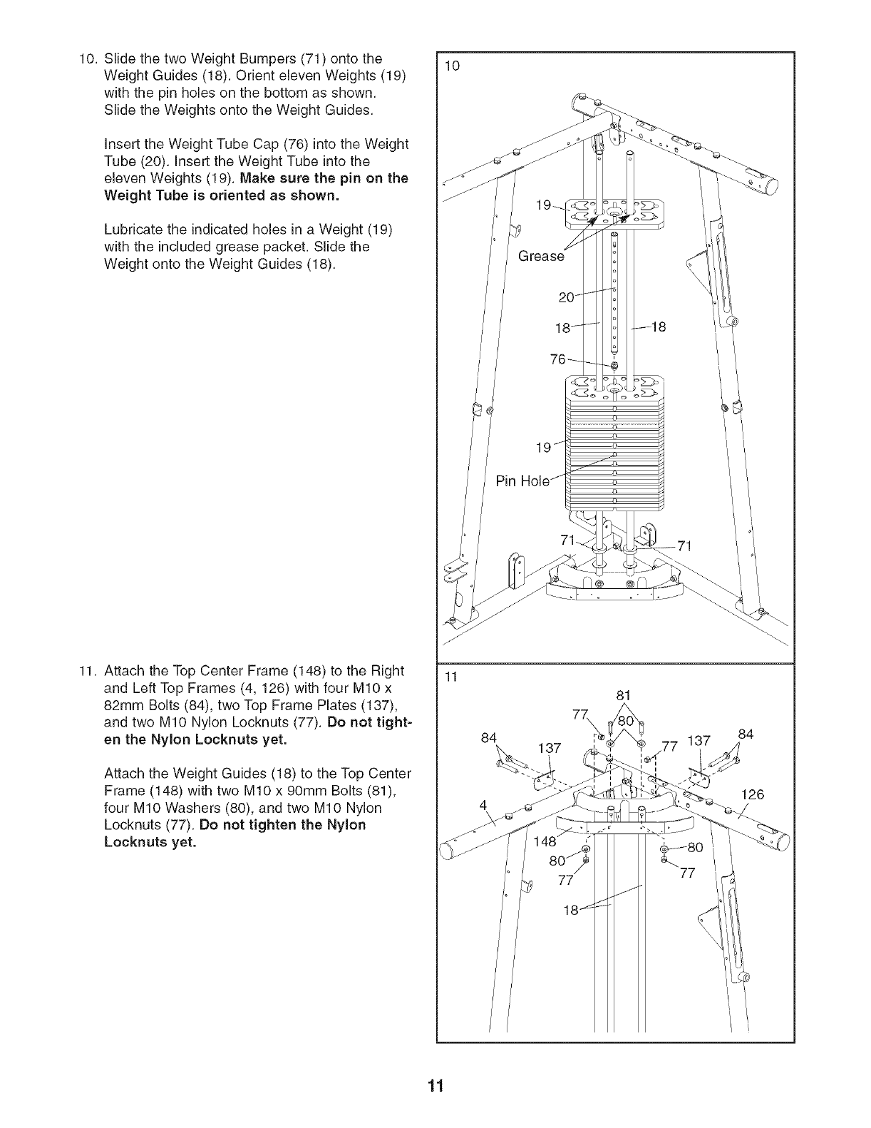 3. The weight system is intended for home use pin and lock after exercising to prevent