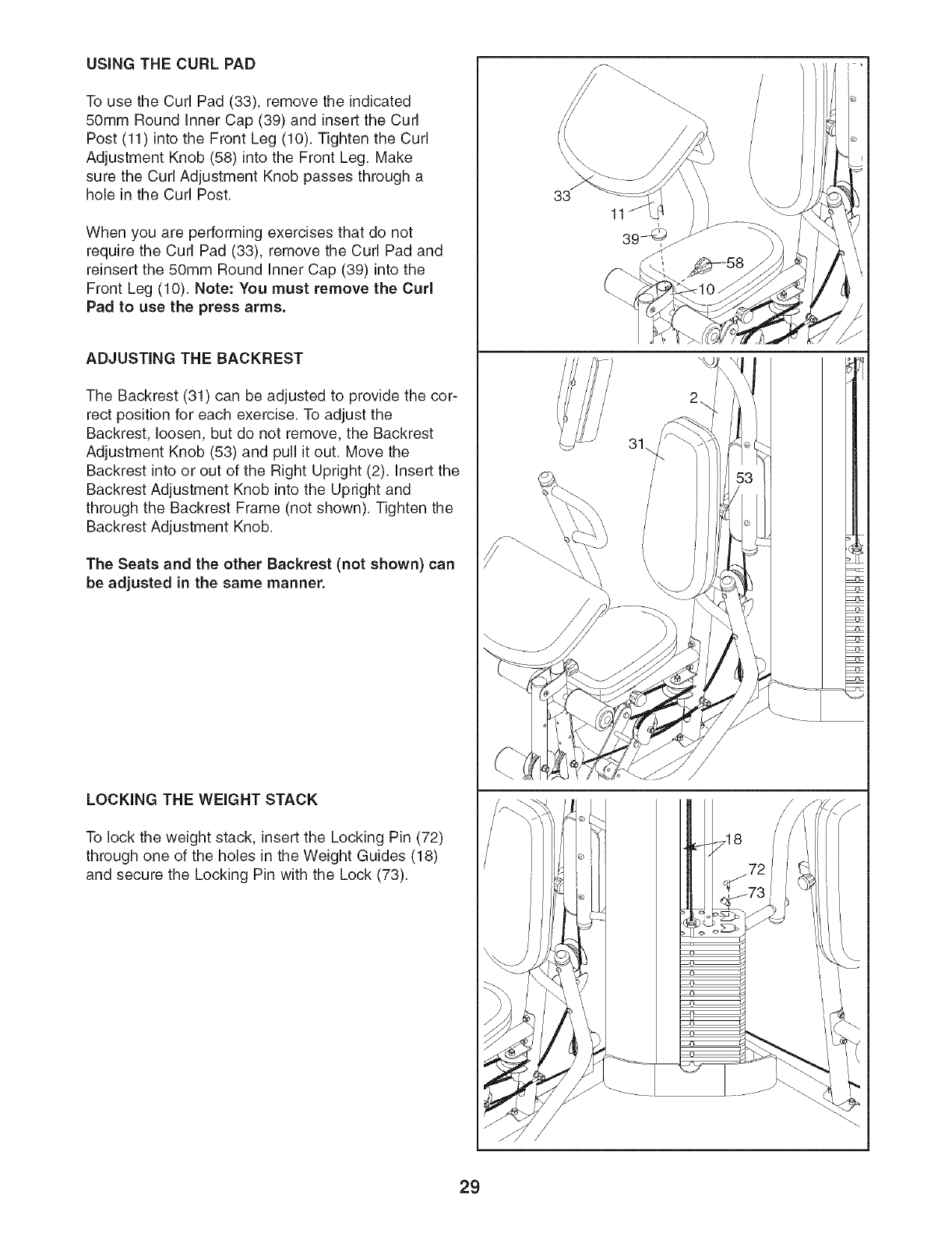 commercial, rental, or institutional setting. LOCKING THE WEIGHT STACK on page 29).