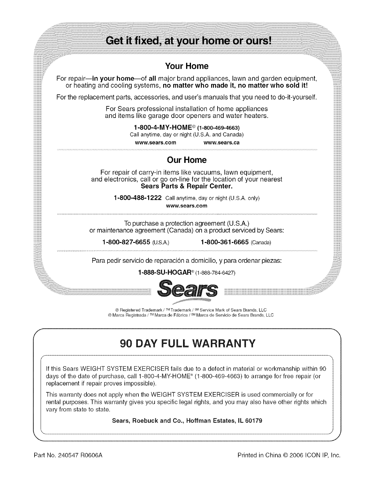 Part No. 240547 RO606A Printed in China © 2006 ICON IP, Inc.