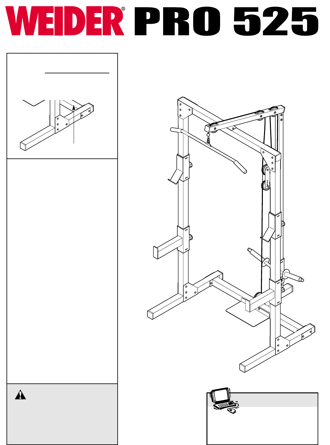 • The NAME of the product (WEIDER PRO 525 weight rack)