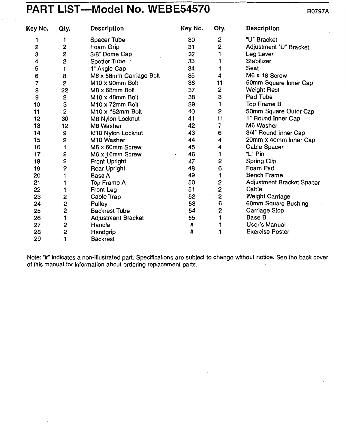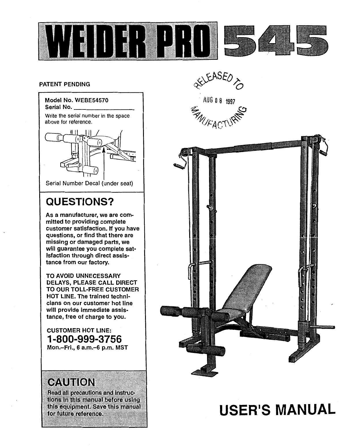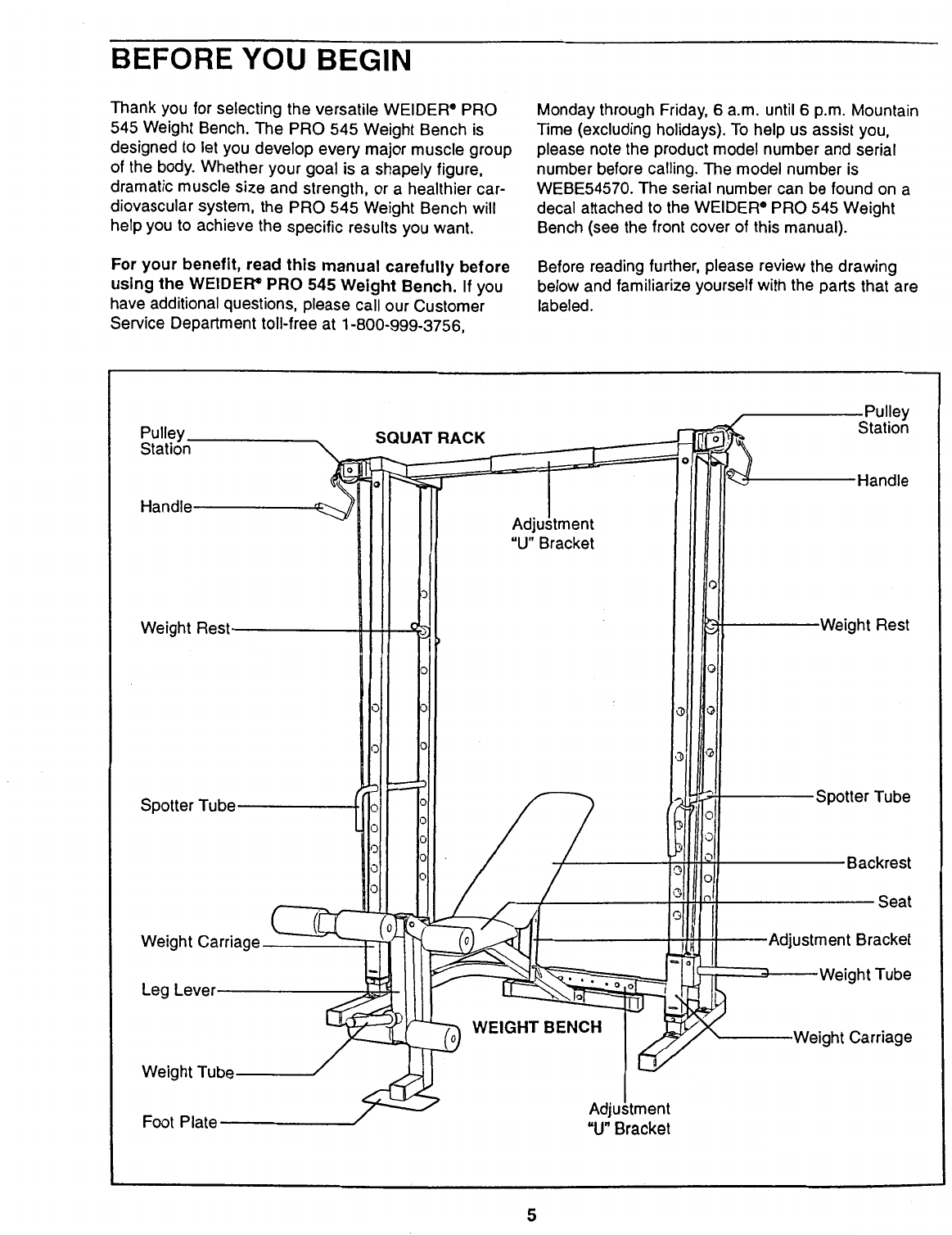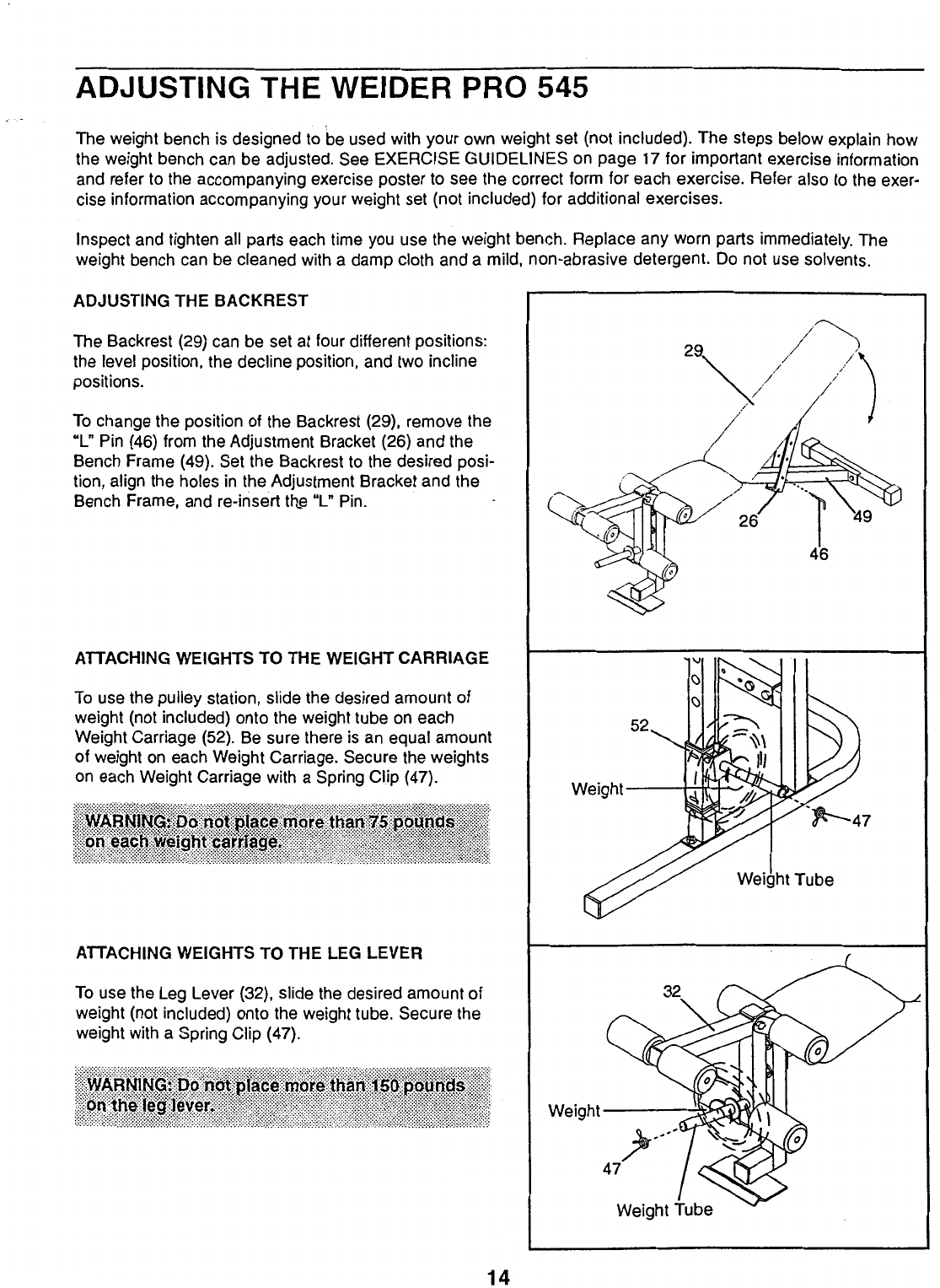 Weider Pro 545 Bench Webe5457 Users Manual