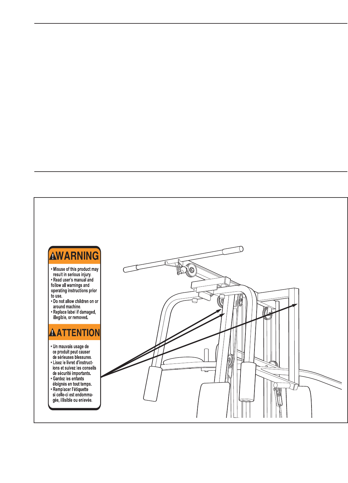 L’autocollant illustré ci-dessous est collé sur l’appareil de musculation. Si l’autocollant est man-