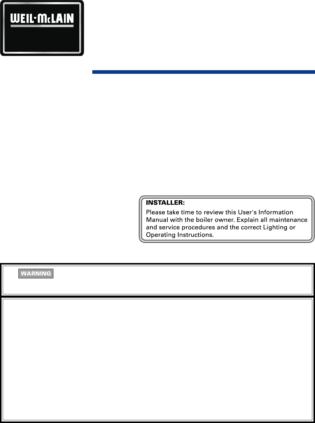The User’s Information Manual provides information to the boiler owner/user for routine