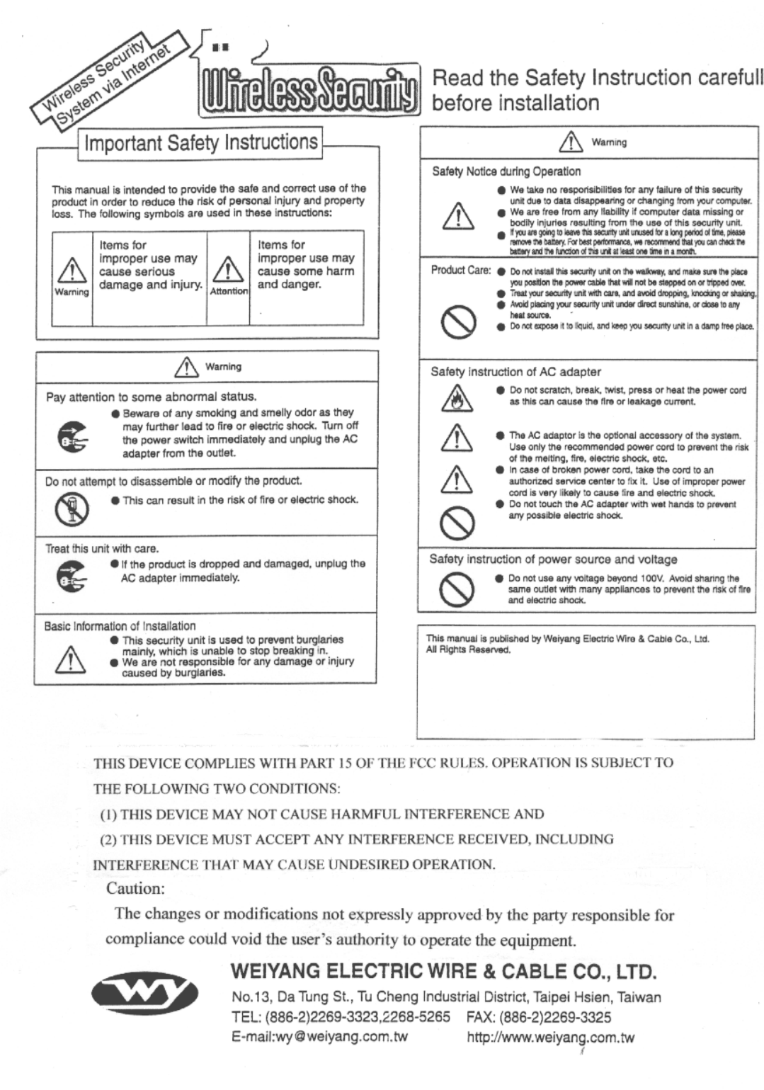 Weiyang Electric Wire & Cable Co., Ltd. Wireless Home Security System