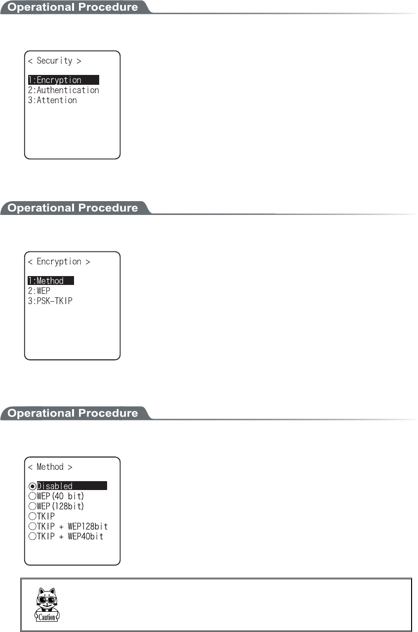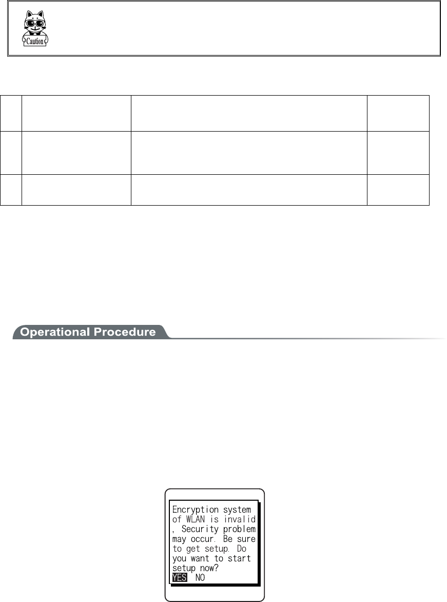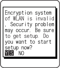 setting, "WLAN Security setting" attention screen is displayed. By