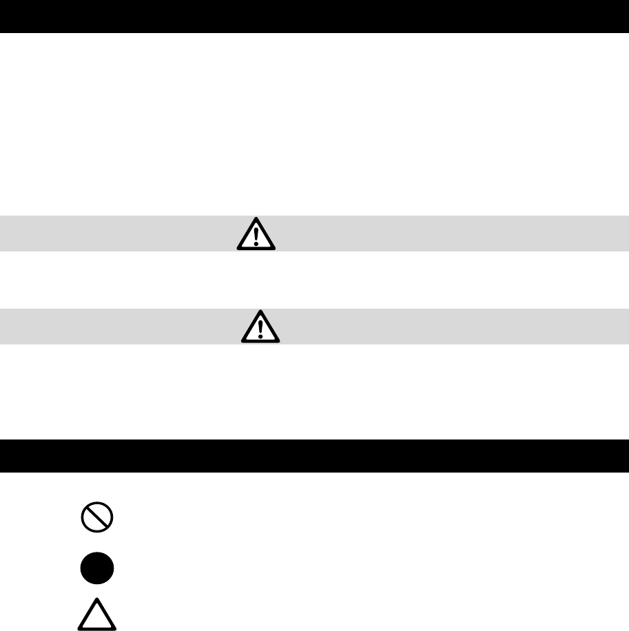Strict observance of these warning and caution indications are MUST for preventing accidents,