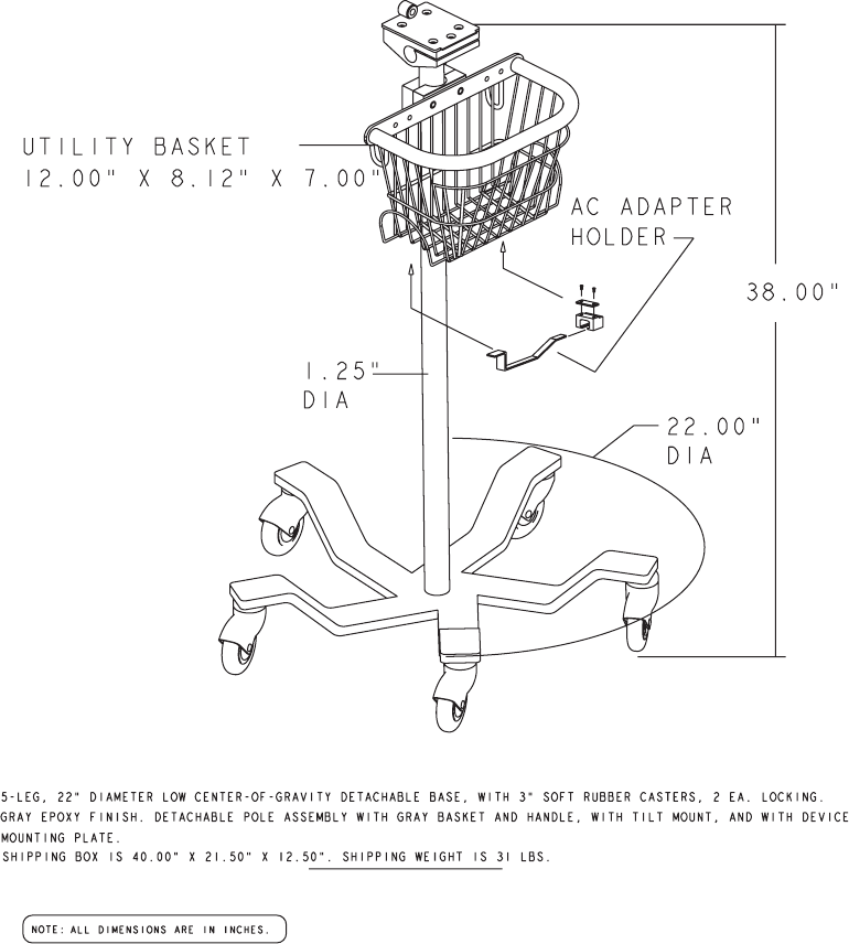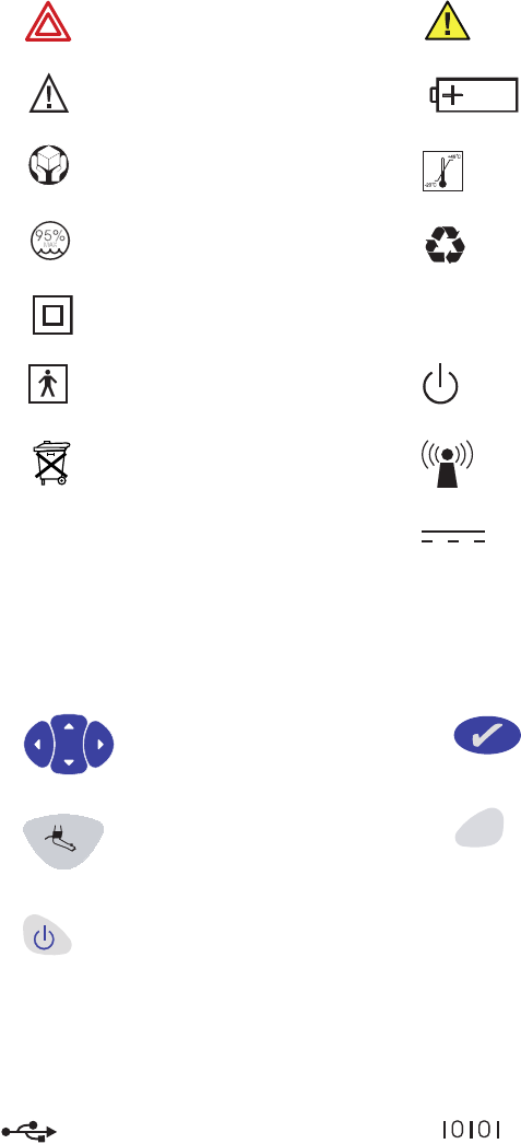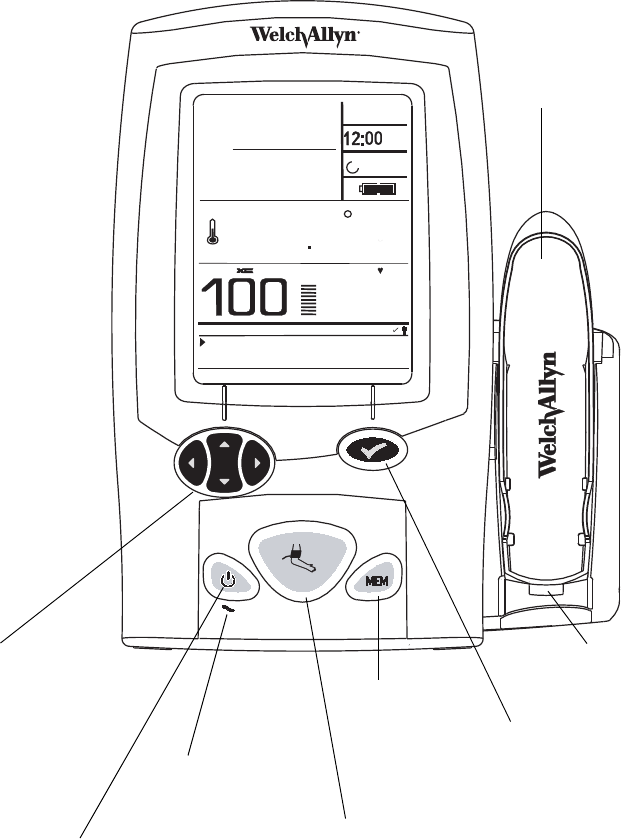 temperature probe, SpO2 probe, or main battery attached, unless otherwise noted.