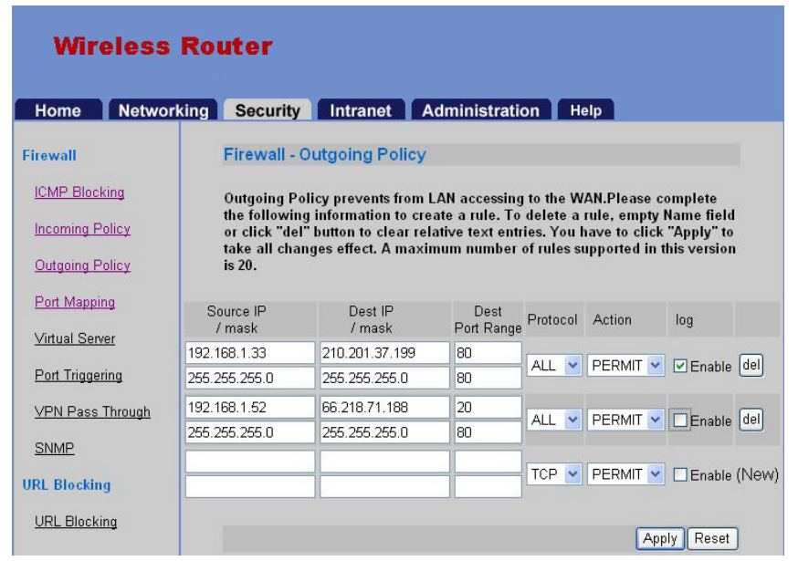 2. Under the Firewall menu item, click on Outgoing Policy.