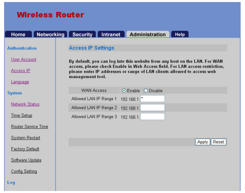 IEEE 802.11g WLAN Router empowers network administrators to allow WAN clients to