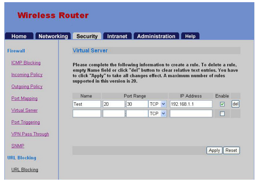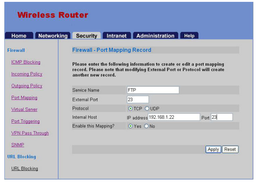 Port Mapping allows IEEE 802.11g WLAN Router to “pretend” to offer the service that